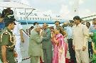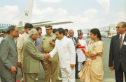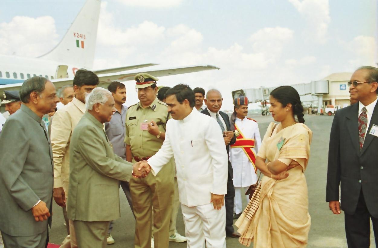 | Caption: | The President of India, Shri K R Narayanan being welcomed by the Governor of Andhra Pradesh, Shri C Rangarajan and the Chief Minister of Andhra Pradesh, Shri N Chandrababu Naidu at Hyderabad Airport in Andhra Pradesh on Oct 05, 2000 |