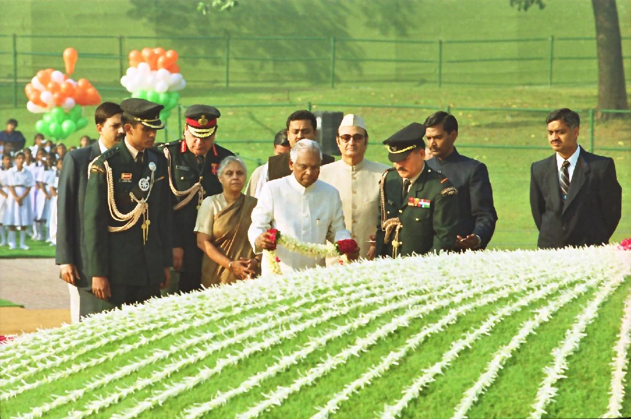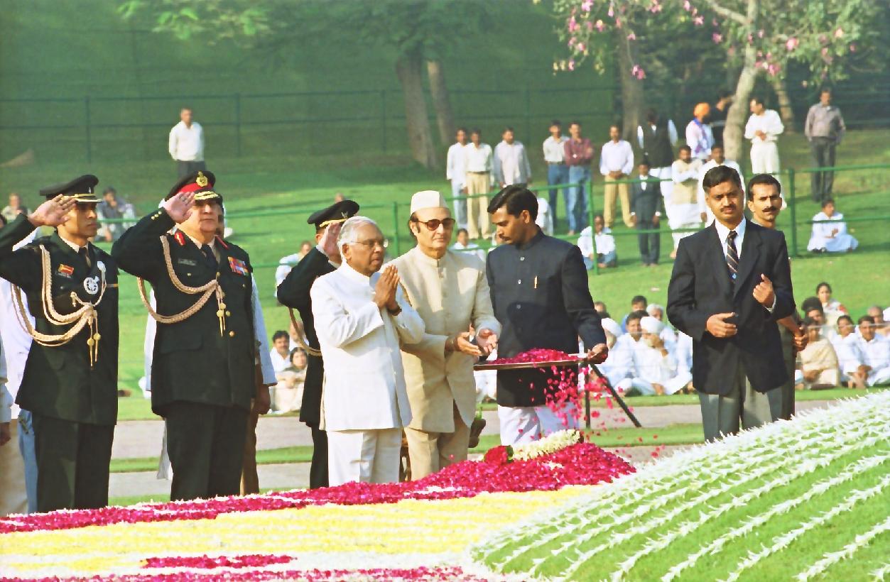 | Caption: | The President of India, Shri K R Narayanan paying floral tributes at the Samadhi of the Former Prime Minister of India, Late Shri Pandit Jawaharlal Nehru to Commemorate his Birth Anniversary at Shanti Van in New Delhi on Nov 14, 2000 |