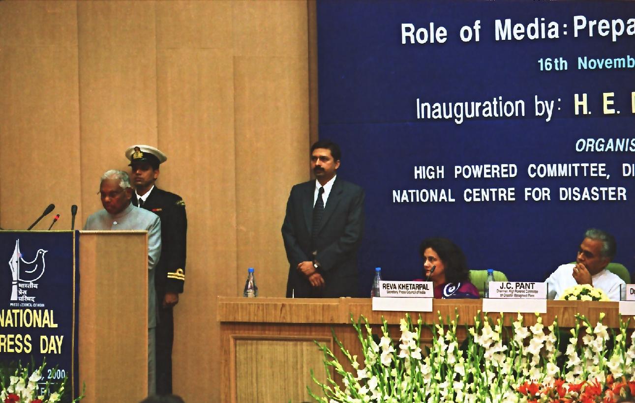 | Caption: | The President of India, Shri K R Narayanan inaugurating the Seminar Role of Media Preparing People to Cope with Disasters at Vigyan Bhavan in New Delhi on Nov 16, 2000 |