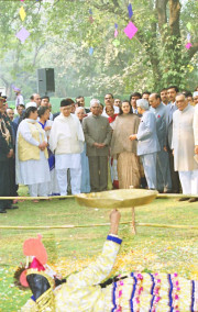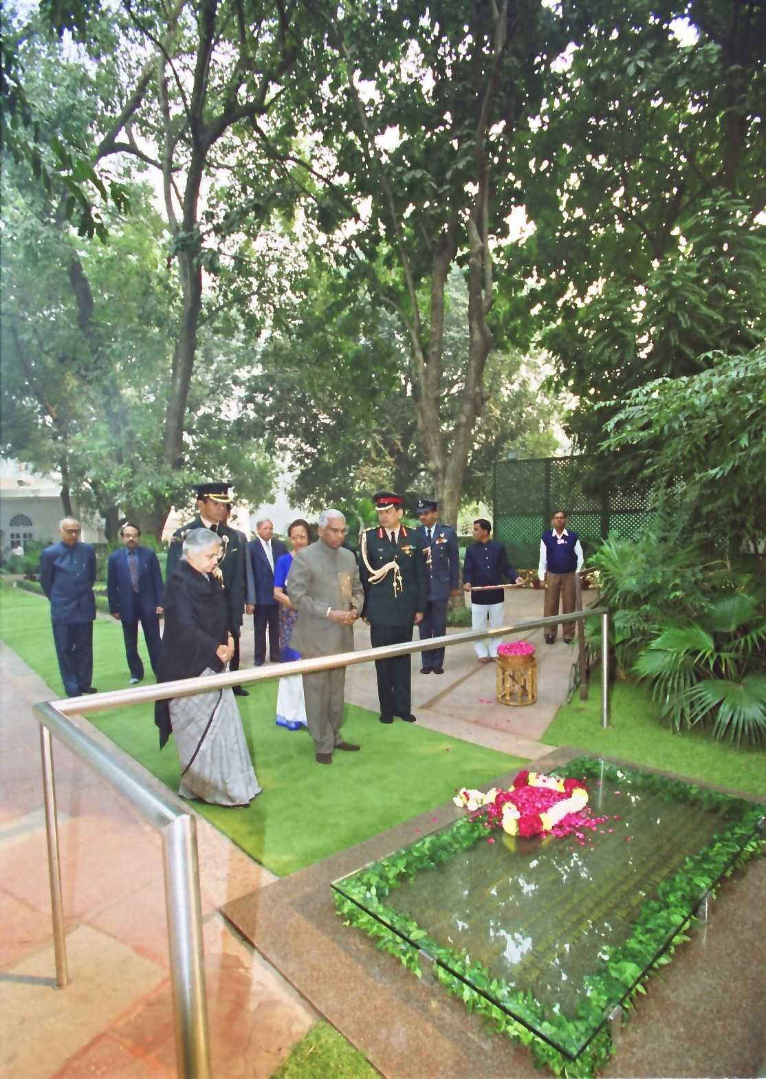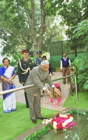 | Caption: | The President of India, Shri K R Narayanan paying floral tributes to the Former Prime Minister of India, Late Smt Indira Gandhi to Commemorate her Birth Anniversary at Akbar Road in New Delhi on Nov 19, 2000 |