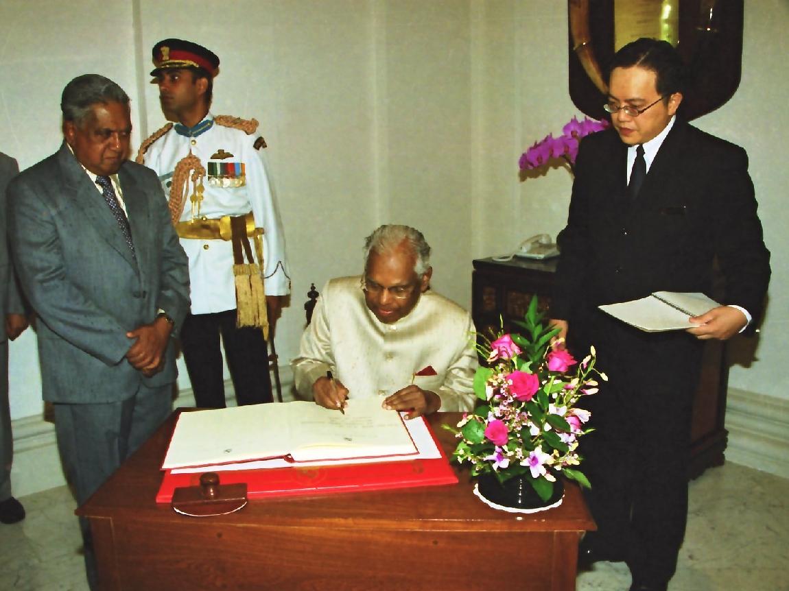 | Caption: | The President of India, Shri K R Narayanan at the Ceremonial Reception during Formal Introduction with Officers in Singapore on Nov 10, 2000 |