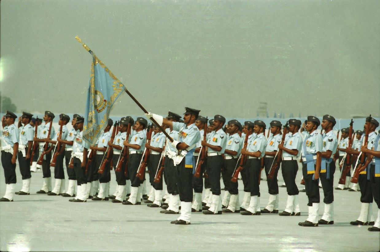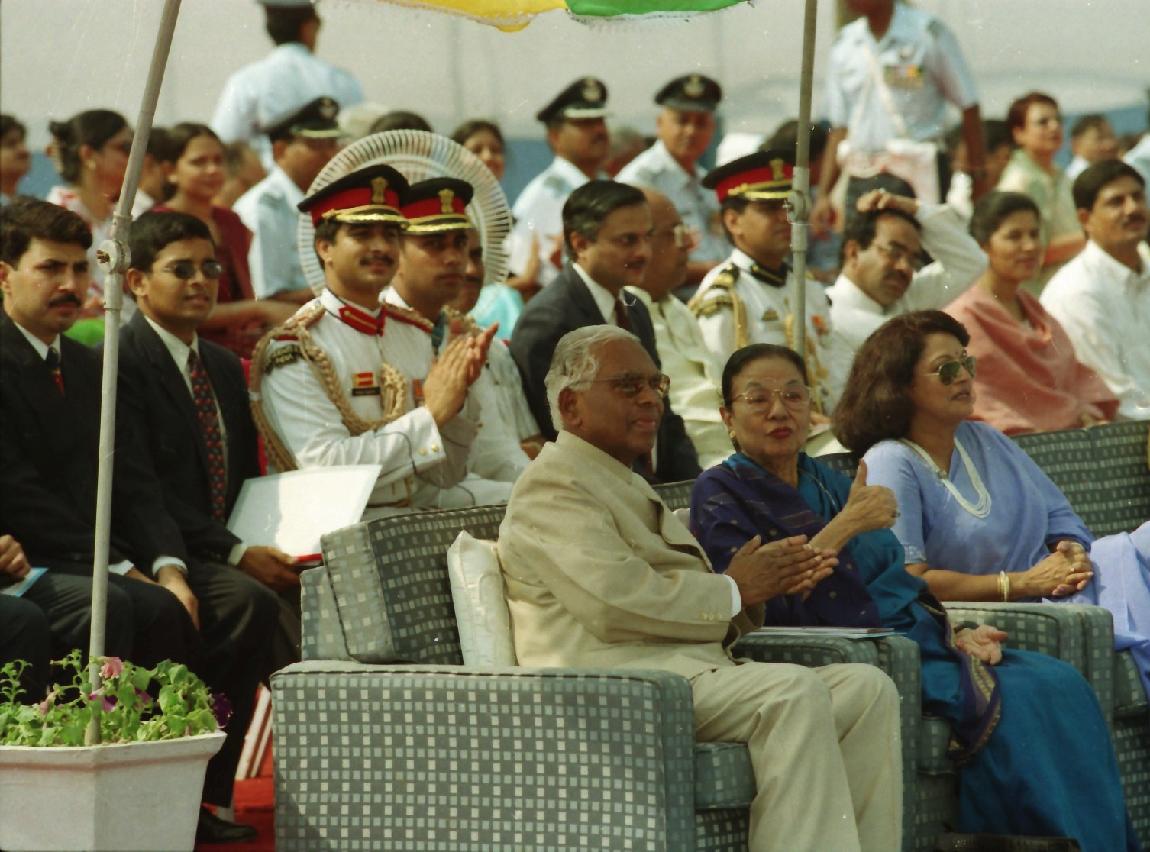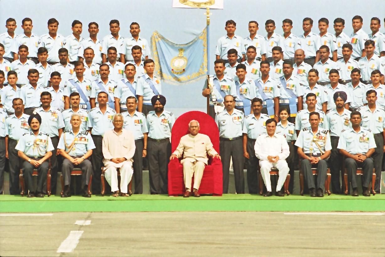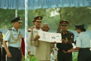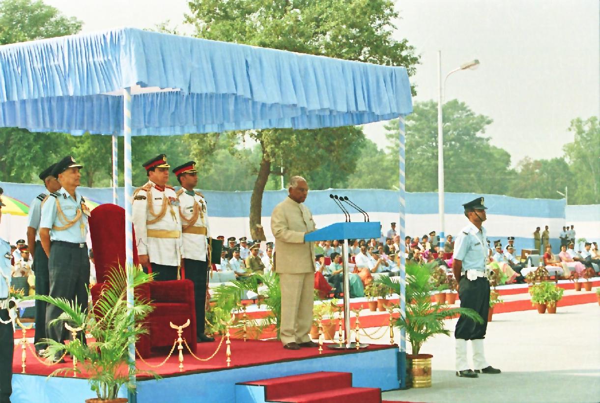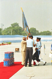 | Caption: | The President of India, Shri K R Narayanan presenting the Colour to Air Force Administrative College and Standard to 35 Squadron at Bareilly in Uttar Pradesh on Oct 24, 2000 |
