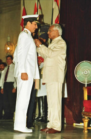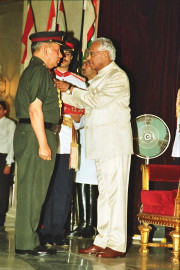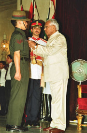 | Caption: | The President of India, Shri K R Narayanan at the Defence Investiture Ceremony-lll at the Darbar Hall of Rashtrapati Bhavan in New Delhi on Oct 20, 2000 |