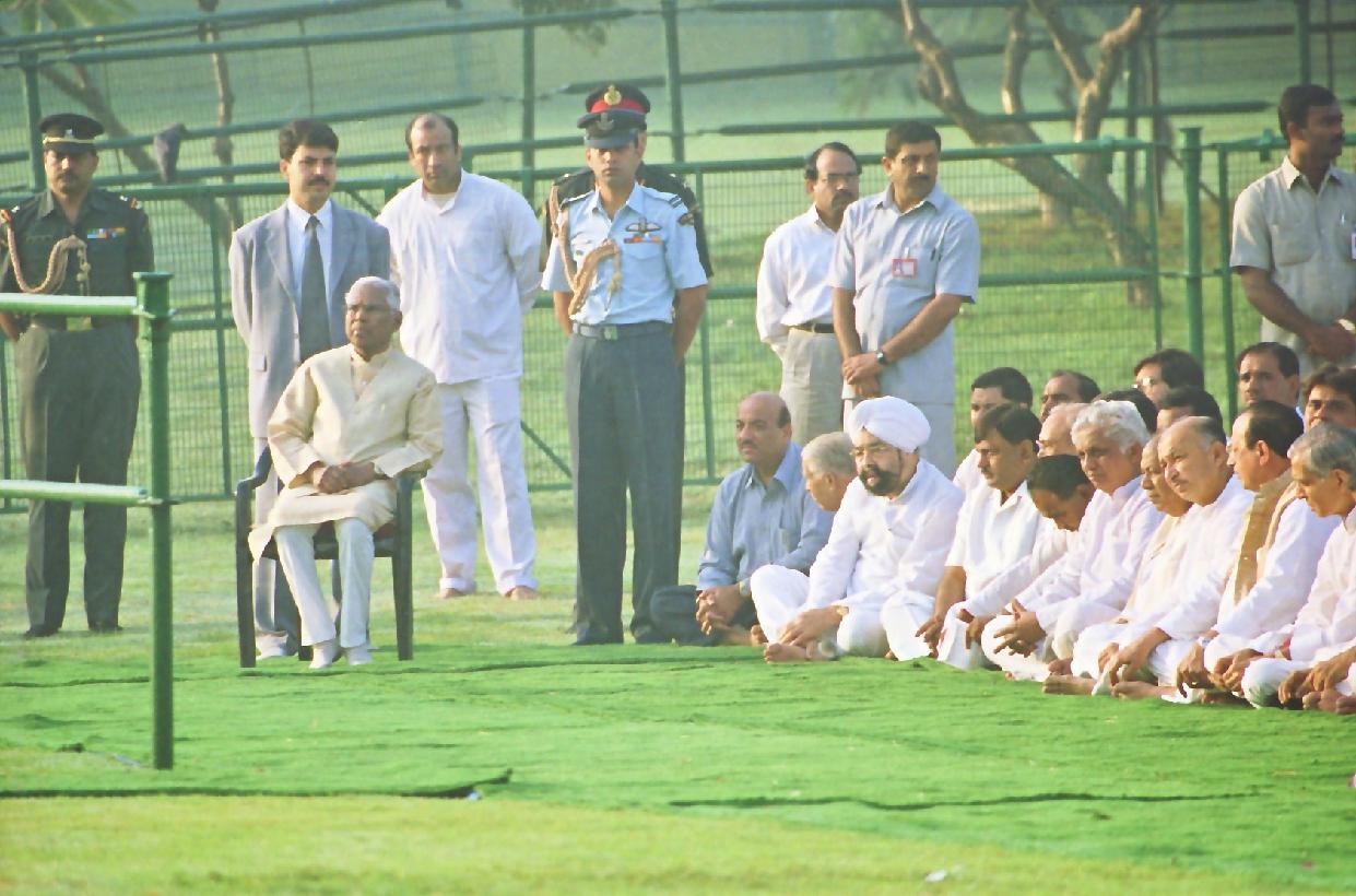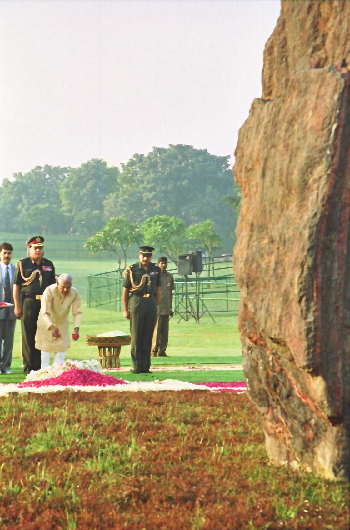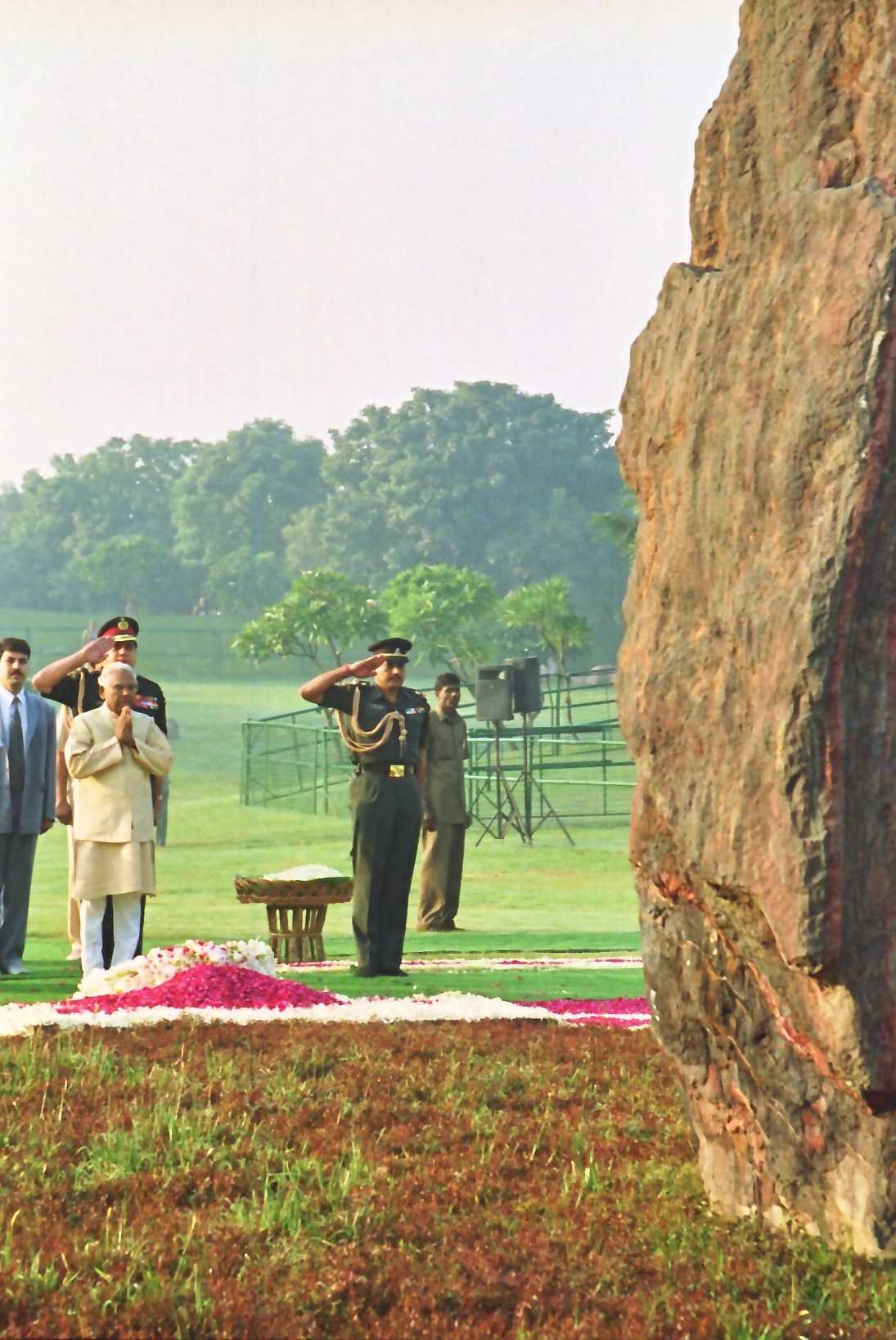 | Caption: | The President of India, Shri K R Narayanan paying homage to the Former Prime Minister of India, Late Smt Indira Gandhi on the occasion of her Death Anniversary at Shakti Sthal in New Delhi on Oct 31, 2000 |