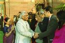 | Caption: | The President of India, Shri K R Narayanan hosting Tea to the Accompanying Delegation and other Officials on Conclusion of the Visit to the Republic of Mauritius at the East Lawn of Rashtrapati Bhavan in New Delhi on March 13, 2001 |