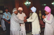 | Caption: | The President of India, Shri K R Narayanan receiving a copy of the Book Dharmik Kranti Ke Nayak Sri Satguru Ravidasji from Shri Joginder Nath of All India Satguru Ravidas Mission at the Committee Room of Rashtrapati Bhavan in New Delhi on Aug 24, 1999 |