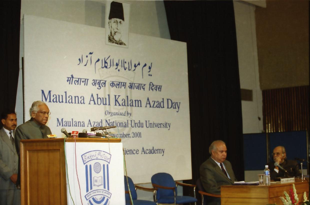 | Caption: | The President of India, Shri K R Narayanan at the 113th Birth Anniversary of Maulana Abul Kalam Azad to be Celebrated by Maulana Azad National Urdu University at Indian National Science Academy, Bahadur Shah Zafar Marg in New Delhi on Nov 11, 2001 |