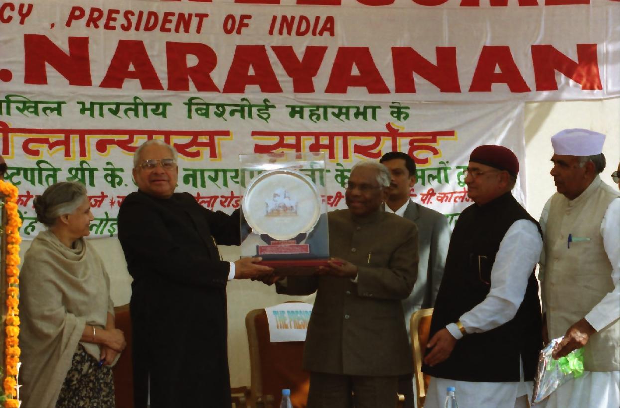 | Caption: | The President of India, Shri K R Narayanan laying the Foundation Stone of Bishnoi Dharmsala, Mandir and Hostel at All India Bishnoi Mahasabha Sansthan in New Delhi on Dec 01, 2001 |