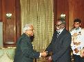| Caption: | The President of the Republic of Namibia, His Excellency Dr Sam Nujoma and his wife Mrs Kovambo Nujoma calling on the President of India, Shri K R Narayanan at the North Drawing Room of Rashtrapati Bhavan in New Delhi on July 21, 1999 |