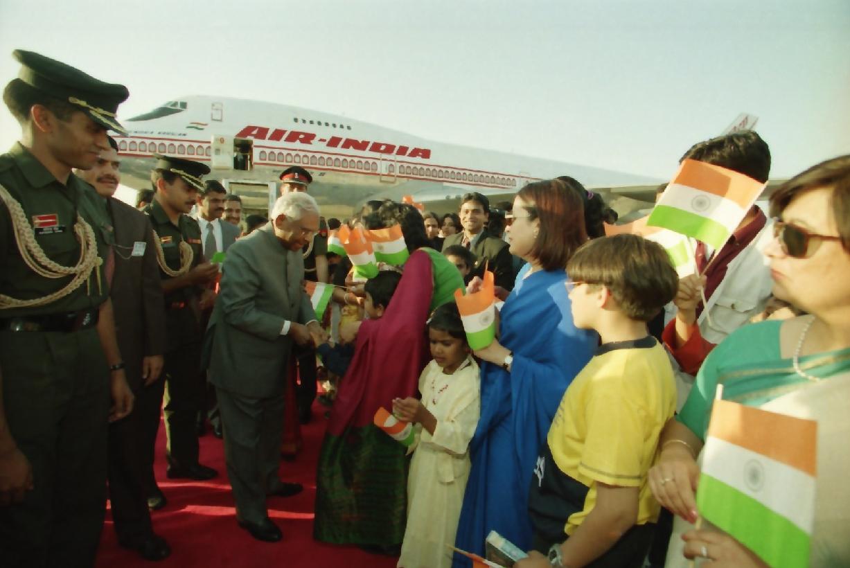 | Caption: | The President of India, Shri K R Narayanan being received by Vice Foreign Minister of China, Mr Yang Wenchang on his Ceremonial Arrival at Beijing Airport in China on May 28, 2000 |