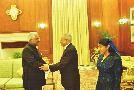 | Caption: | The President of the Republic of Maldives, HE Mr Maumoon Abdul Gayoom and his wife Mme Nasreena Gayoom calling on the President of India, Shri K R Narayanan at the North Drawing Room of Rashtrapati Bhavan in New Delhi on August 21, 2000 |