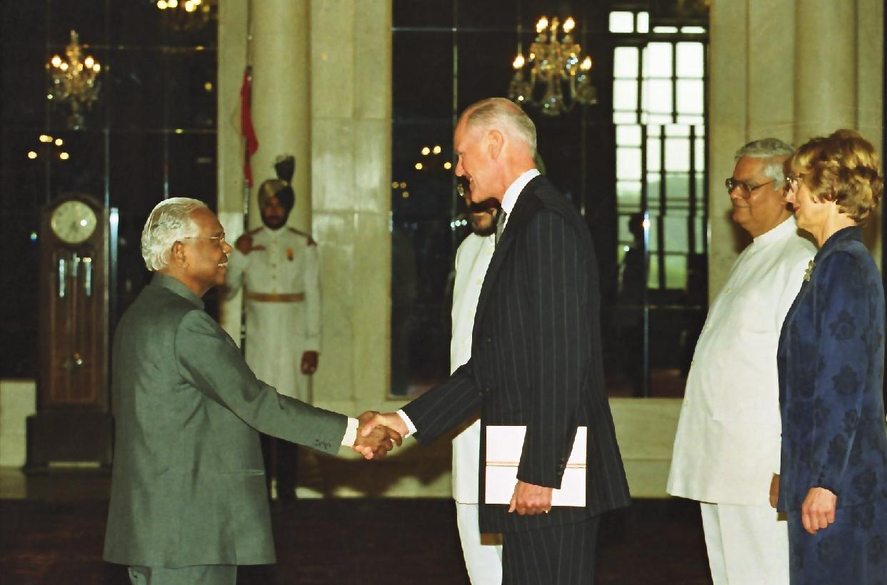 | Caption: | The Ambassador-Designate of Sweden to India, HE Mr Johan Nordenfelt presenting his credentials to the President of India, Shri K R Narayanan at the Ashok Hall of Rashtrapati Bhavan in New Delhi on August 03, 2000 |