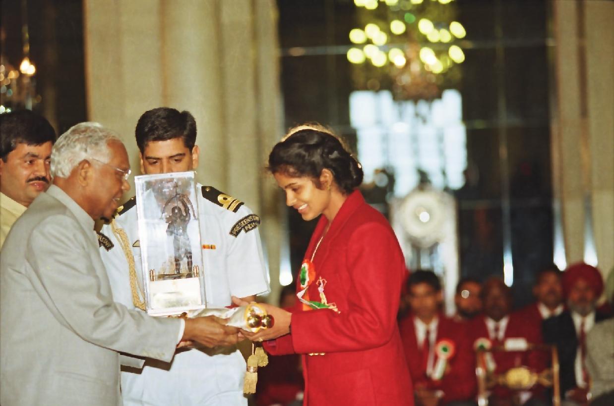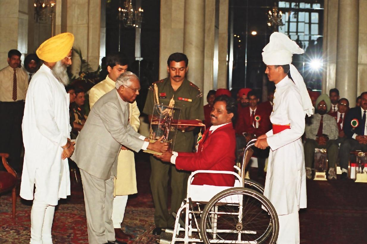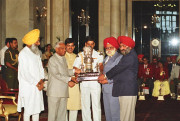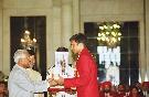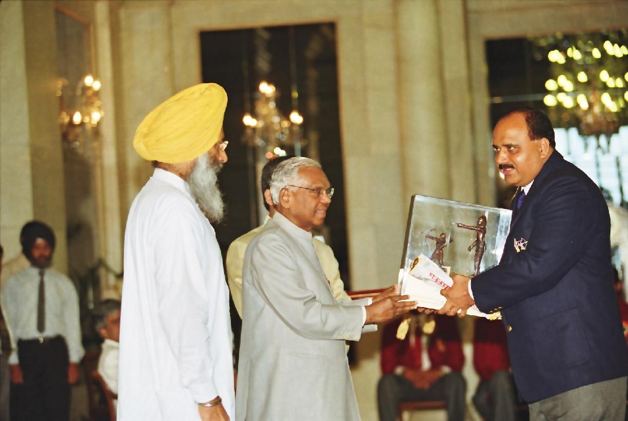 | Caption: | The President of India, Shri K R Narayanan presenting the Rajiv Gandhi Khel Ratna Award, Dronacharya Awards, Arjuna Awards and Maulana Abul Kalam Azad Trophy at the Ashok Hall at Rashtrapati Bhavan in New Delhi on August 29, 2000 |