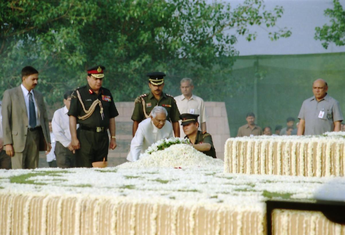 | Caption: | The President of India, Shri K R Narayanan paying homage at the Samadhi of the Prime Minister of India, Late Shri Rajiv Gandhi on the occasion of his Death Anniversary at Vir Bhumi in New Delhi on May 21, 2001 |
