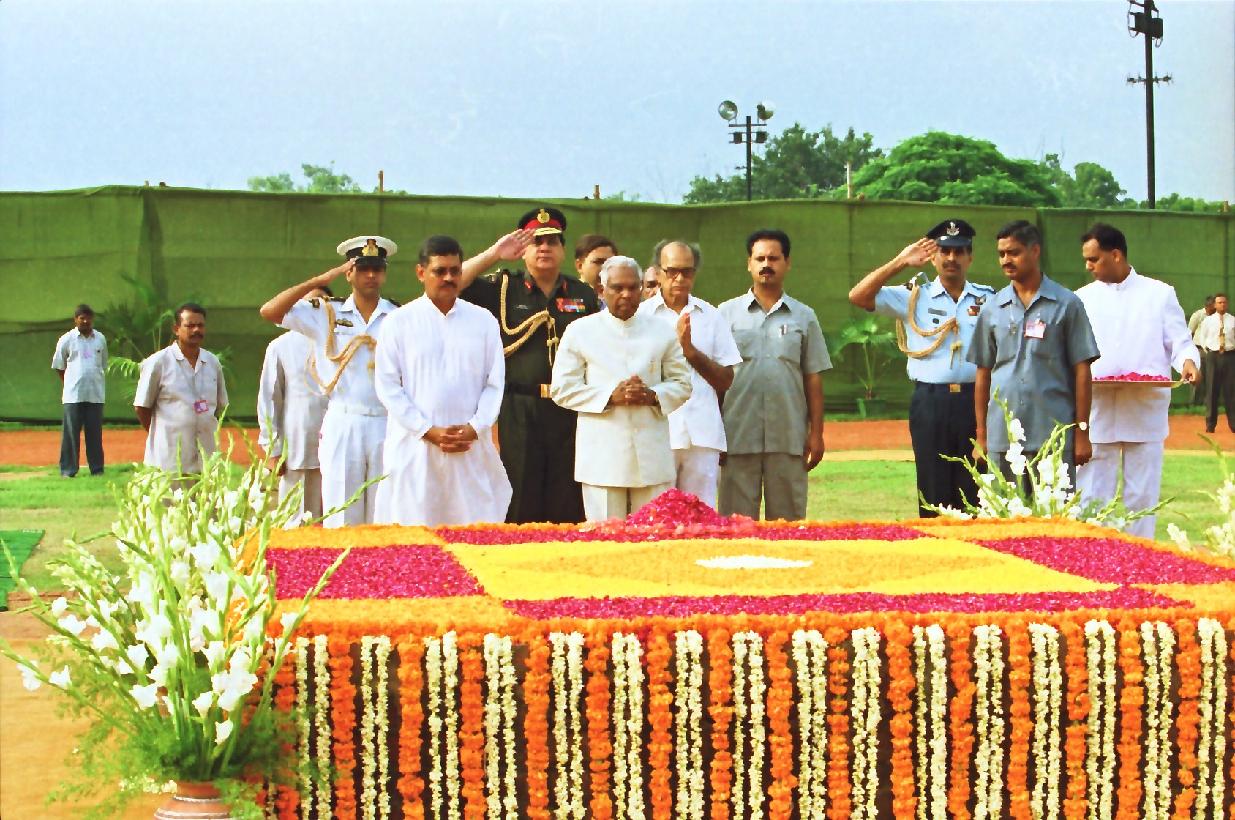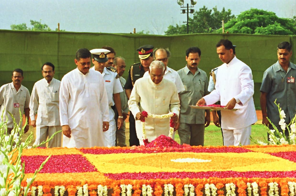 | Caption: | The President of India, Shri K R Narayanan paying floral tributes to the Former President of India, Late Dr Shanker Dayal Sharma on his Birth Anniversary at Karma Bhoomi in New Delhi on August 19, 2000 |