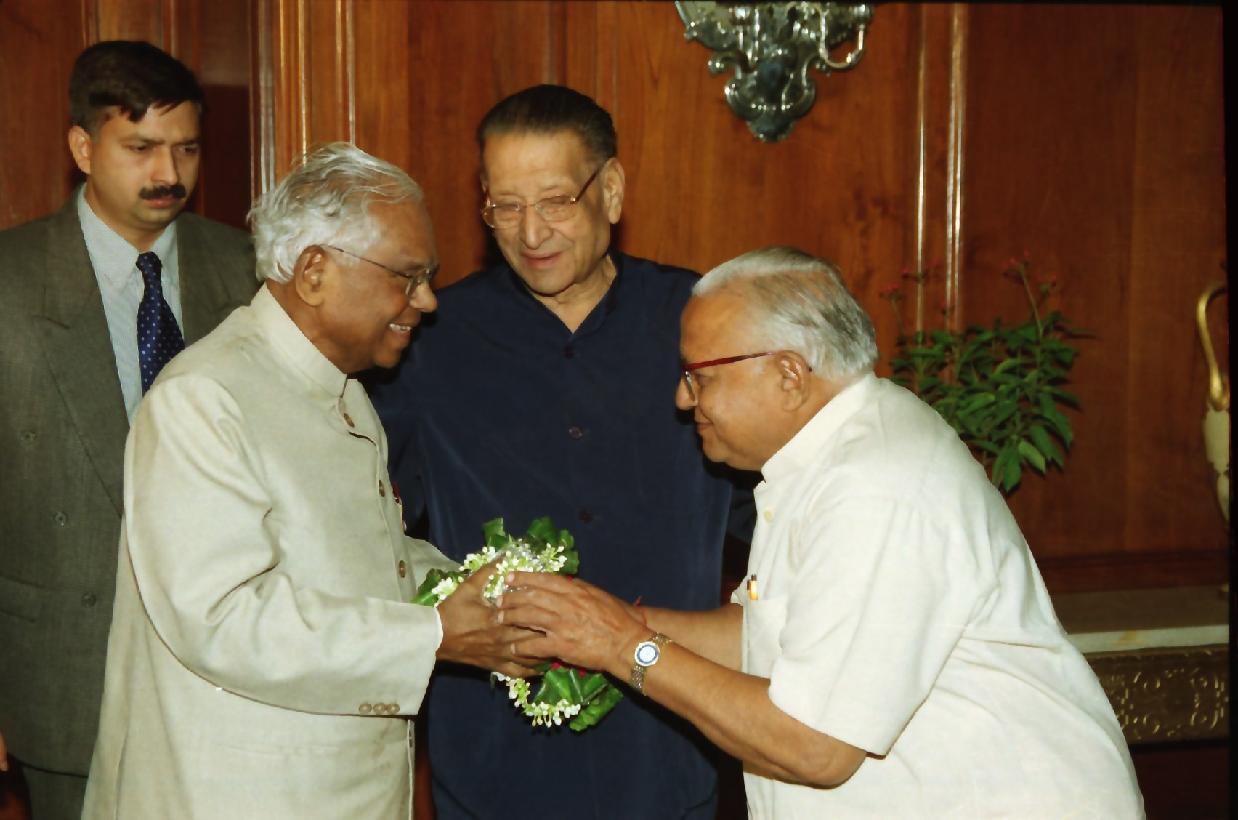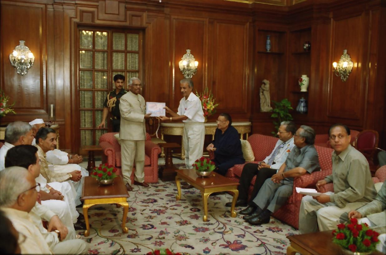 | Caption: | The President of India, Shri K R Narayanan with the Members of Shri Dharmic Leela Committee Parade Ground at the Committee Room of Rashtrapati Bhavan in New Delhi on Oct 16, 2001 |