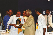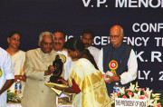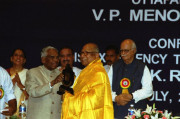 | Caption: | The President of India, Shri K R Narayanan presenting the First VP Menon Awards Instituted by the Chettur Sankaran Nair Foundation, Ottapalam at Chinmaya Auditorium in New Delhi on July 10, 2002 |