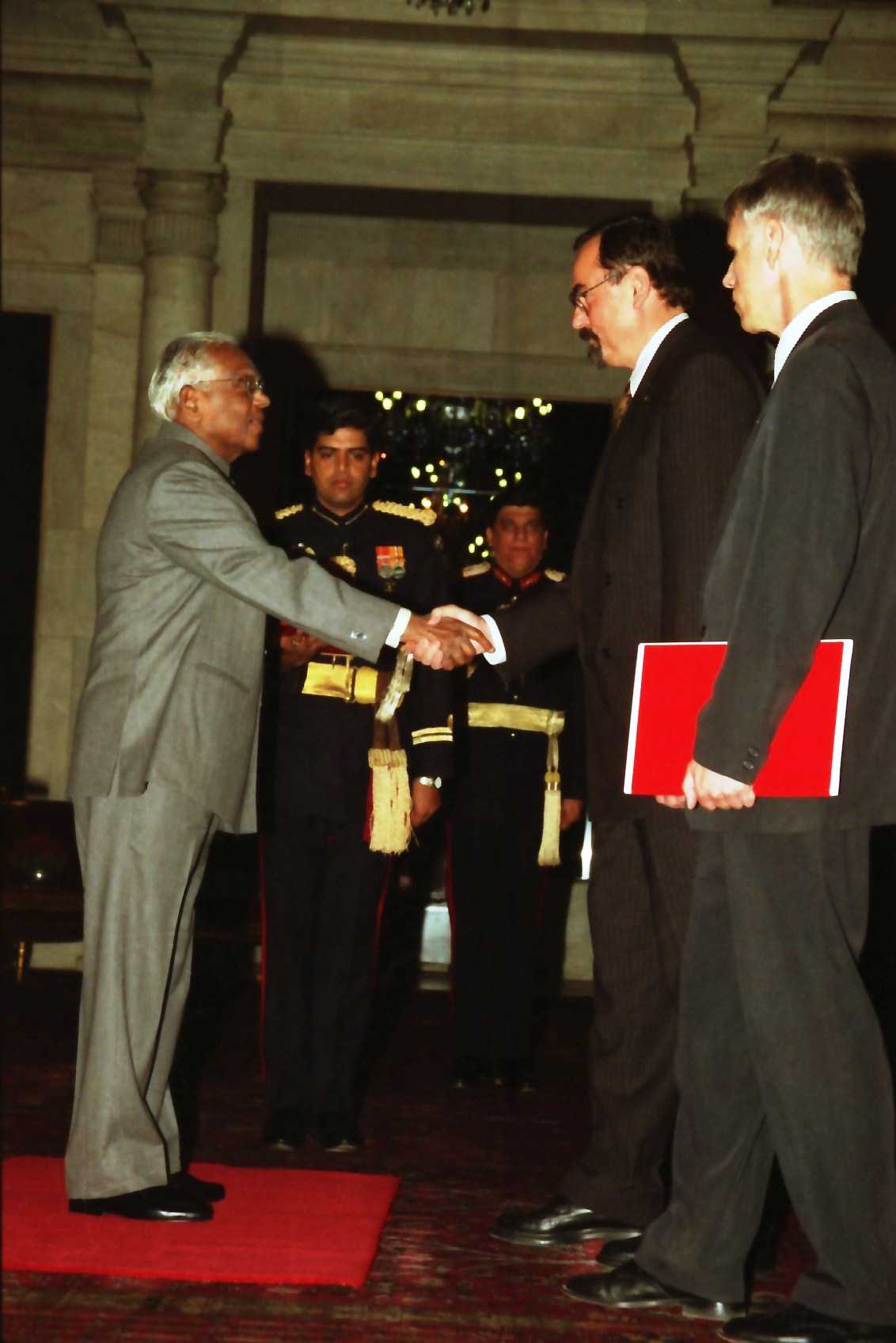 | Caption: | The Ambassador-Designate of the Czech Republic to India, HE Mr Jaromir Novotny presenting his credentials to the President of India, Shri K R Narayanan at the Ashok Hall of Rashtrapati Bhavan in New Delhi on Dec 11, 2001 |