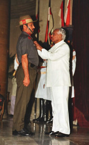 | Caption: | The President of India, Shri K R Narayanan during the Defence Investiture Ceremony - IV at the Darbar Hall of Rashtrapati Bhavan in New Delhi on Nov 03, 2000 |
