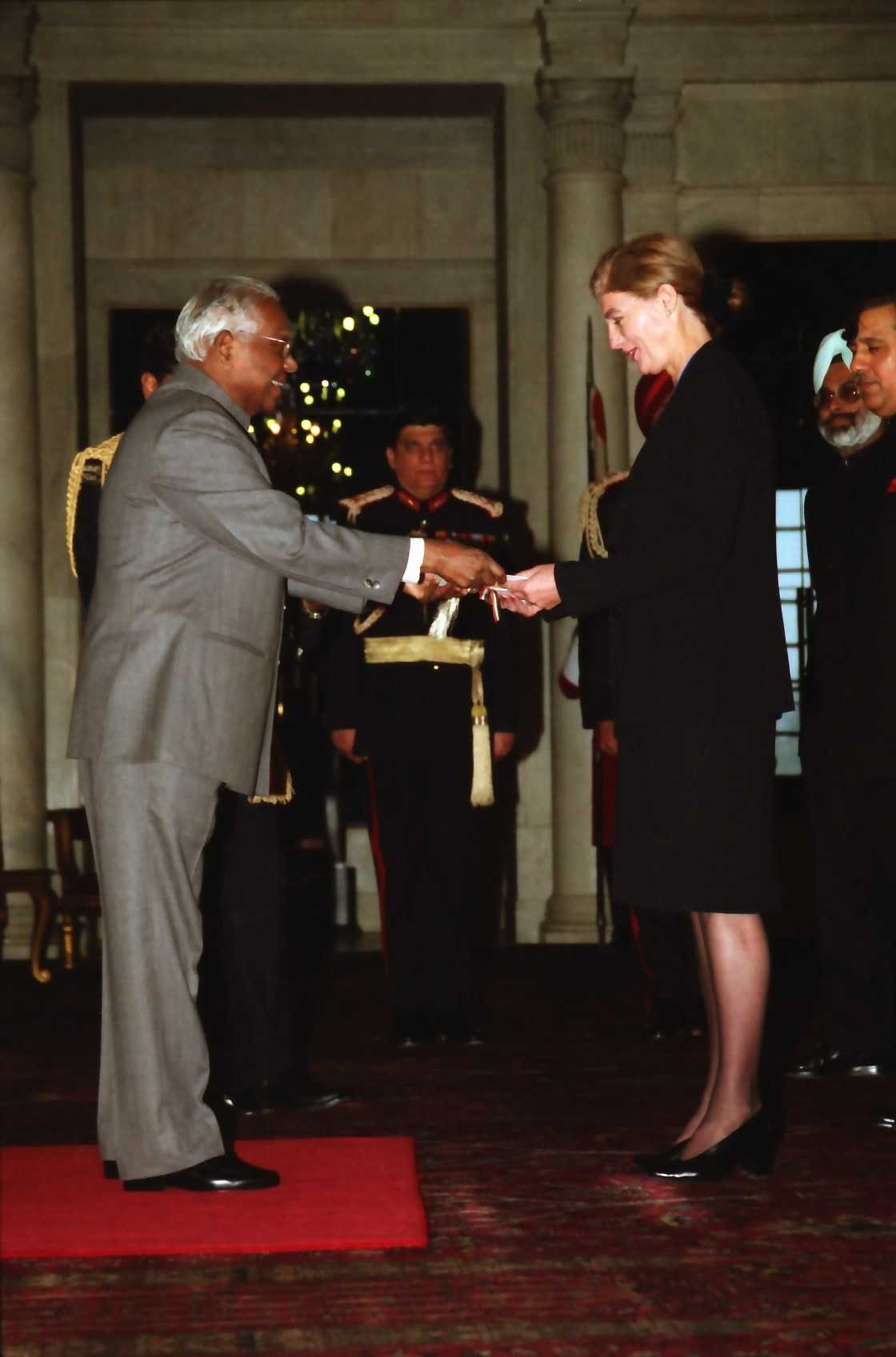 | Caption: | The High Commissioner-Designate of Australia to India, HE Ms Penelope Anne Wensley AO presenting her credentials to the President of India, Shri K R Narayanan at the Ashok Hall of Rashtrapati Bhavan in New Delhi on Dec 11, 2001 |