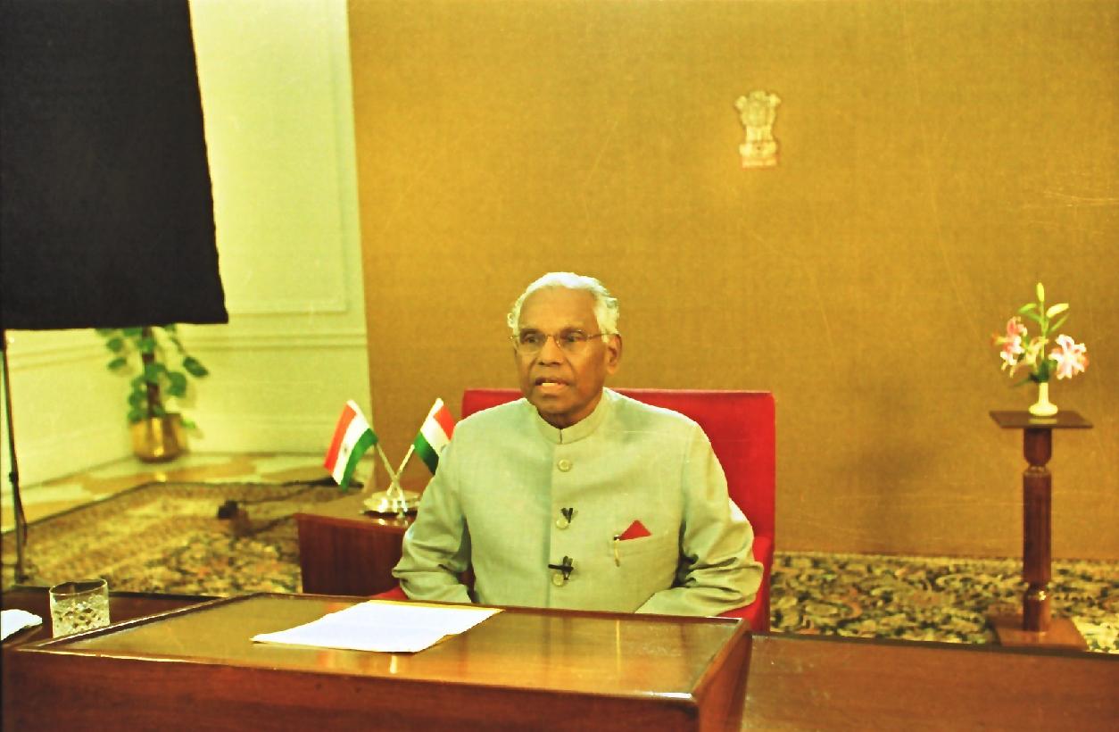 | Caption: | The President of India, Shri K R Narayanan addressing to the Nation through Message Recording on the eve of Independence Day at the Morning Room of Rashtrapati Bhavan in New Delhi on August 12, 2000 |