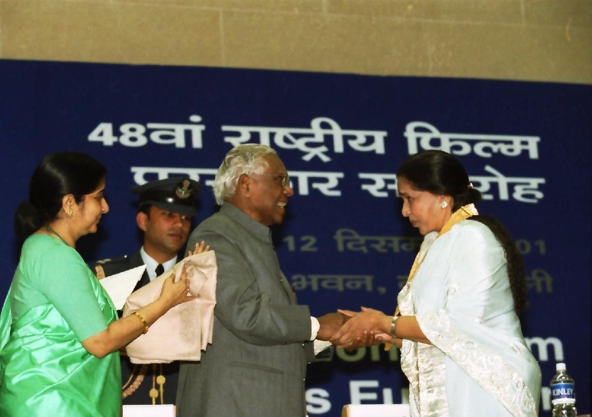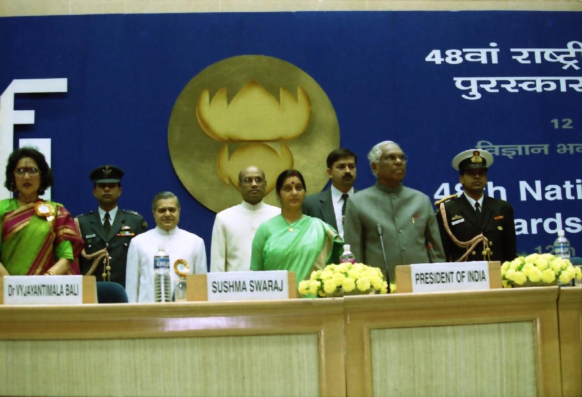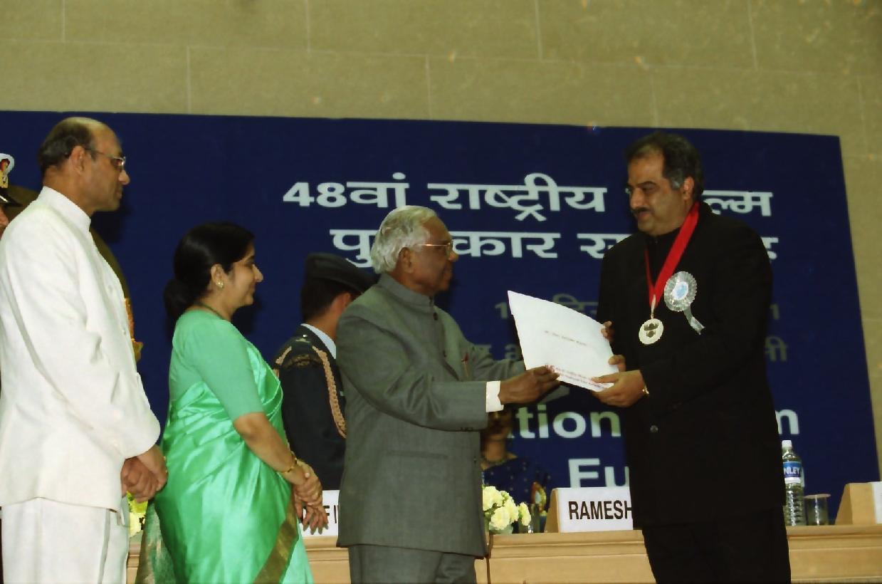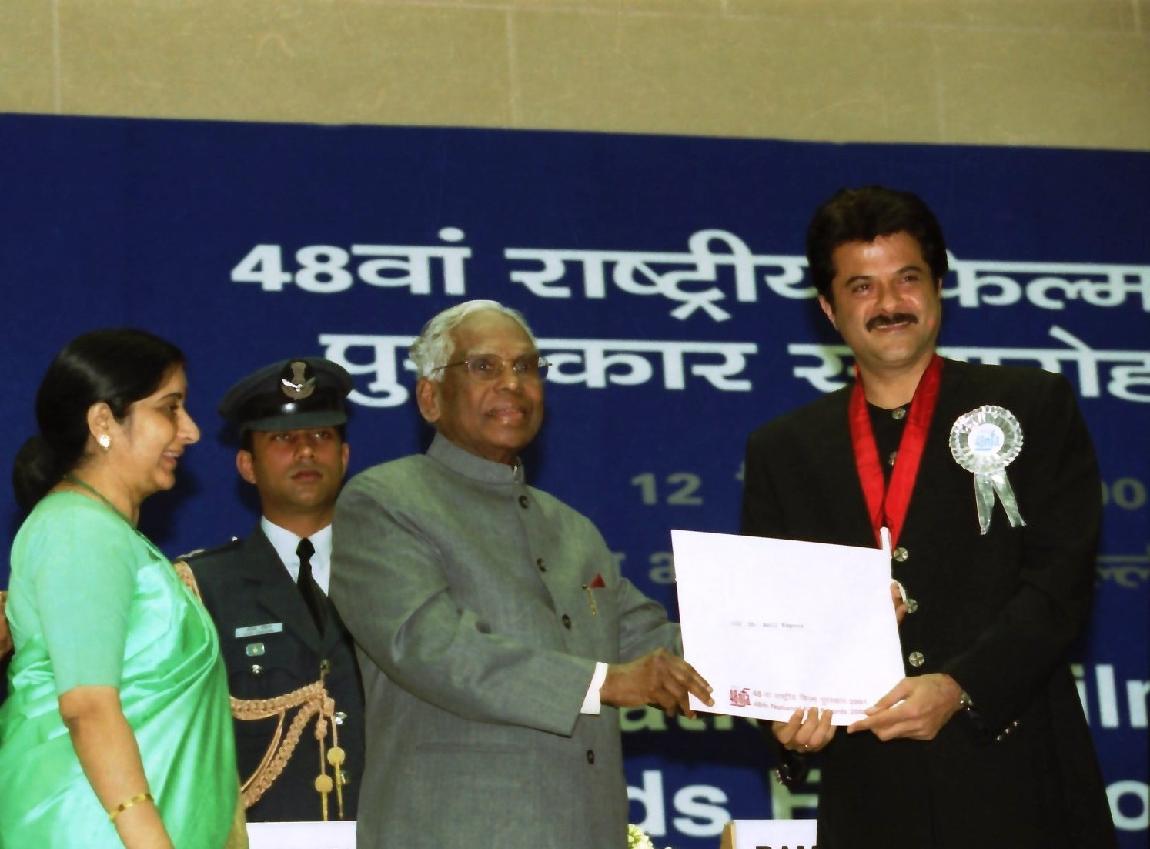 | Caption: | The President of India, Shri K R Narayanan presenting the 48th National Film Awards at Vigyan Bhavan in New Delhi on Dec 12, 2001 |