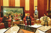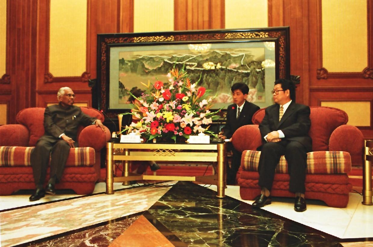 | Caption: | The President of India, Shri K R Narayanan during the Joint meeting with the Governor of Liaoning Province and Mayor of Dalian at Dalian City in China on May 31, 2000 |
