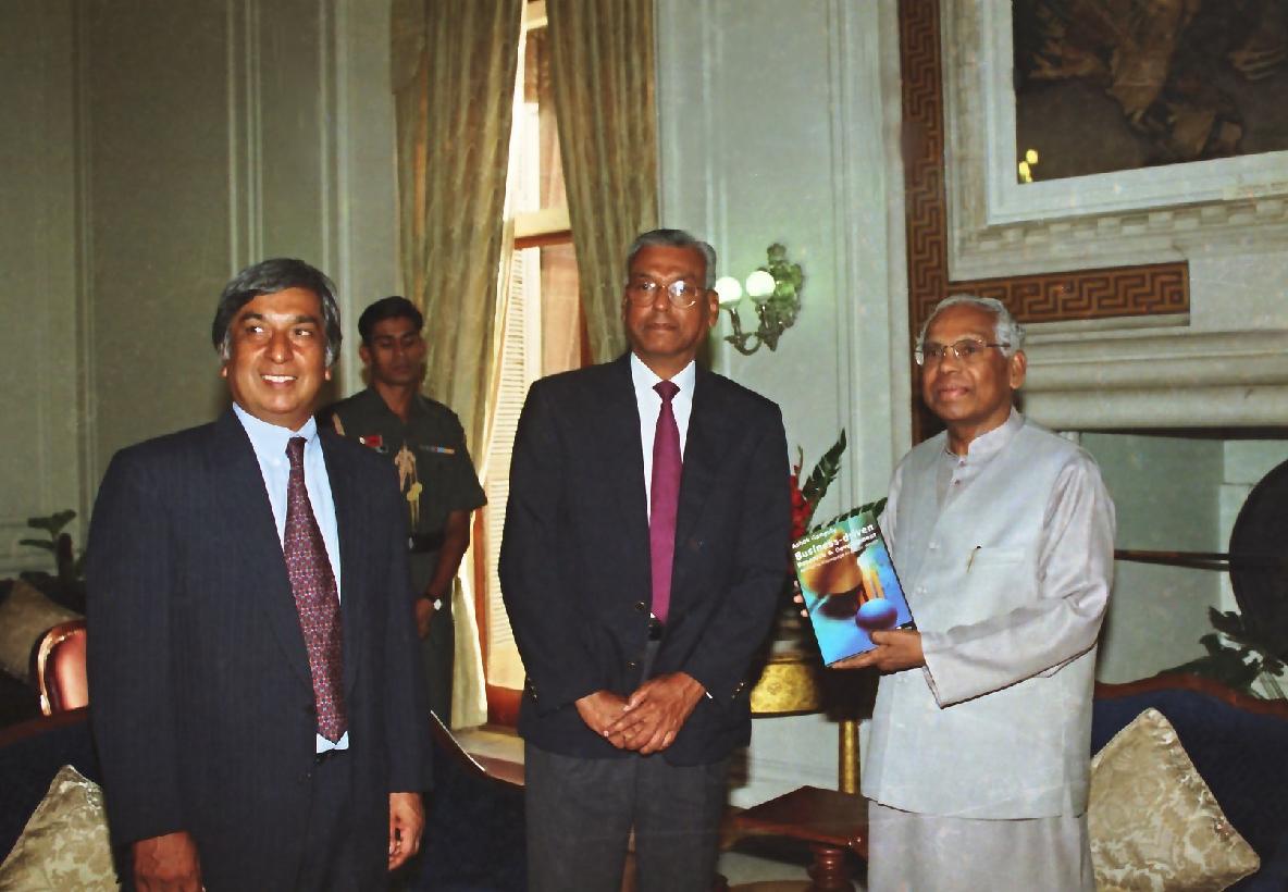 | Caption: | The President of India, Shri K R Narayanan receiving a copy of the Book Business Driven Research and Development from Dr Ashok Ganguly at the Morning Room of Rashtrapati Bhavan in New Delhi on Aug 24, 1999 |