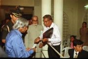 | Caption: | The President of India, Dr A P J Abdul Kalam visiting to Haj House Relief Camp in Gujarat on Aug 12, 2002 |