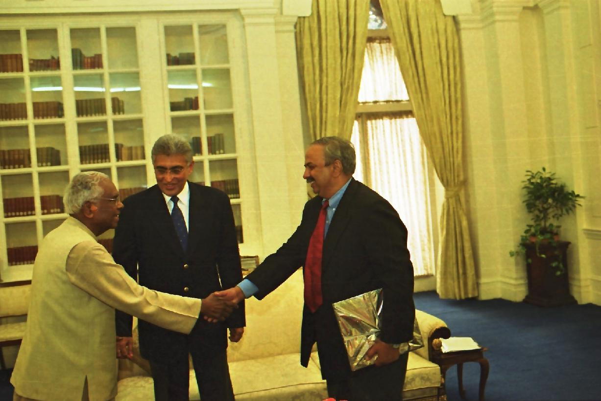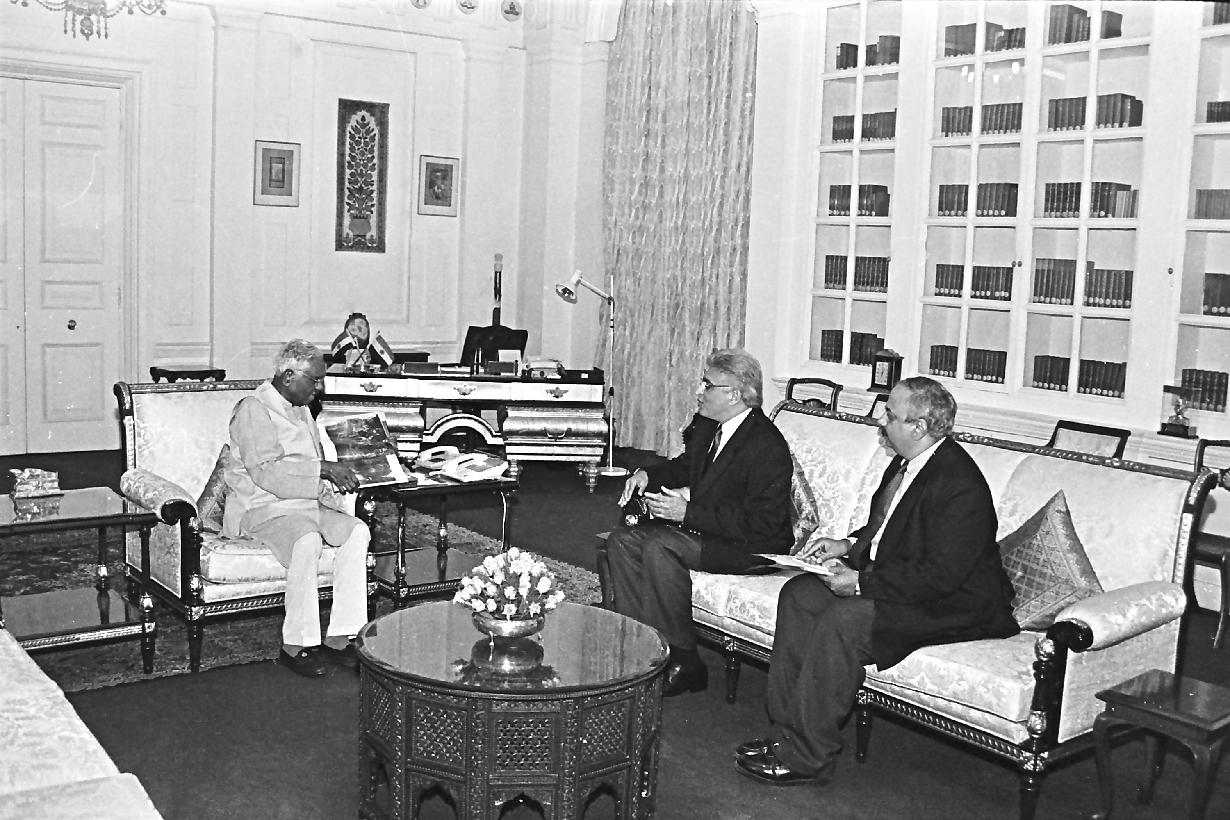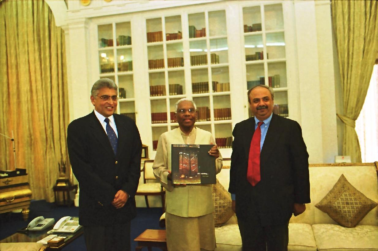| Caption: | The President of India, Shri K R Narayanan receiving a Copy of the Book of 'Rain' Pictures by Victor George from Shri K M Mathew at Rashtrapati Bhavan in New Delhi on July 08, 2002 |