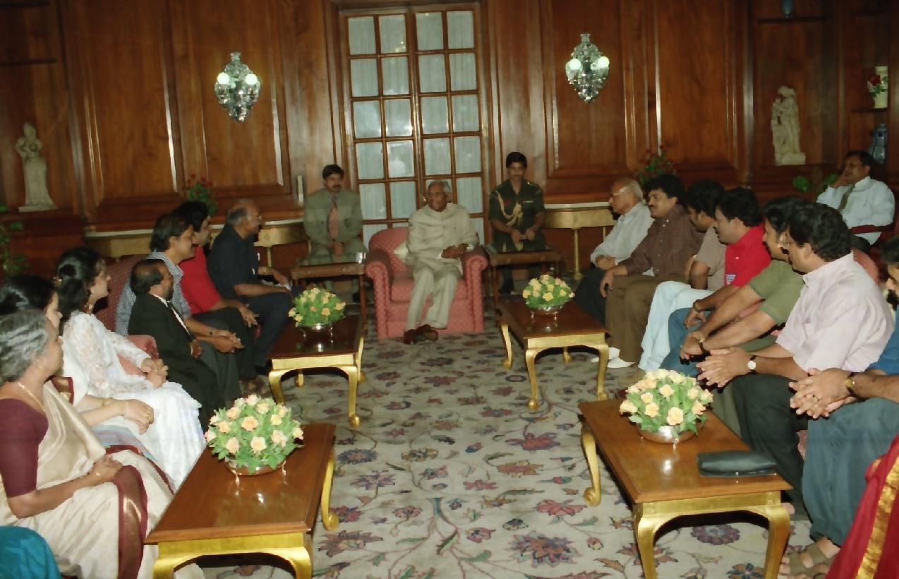 | Caption: | The Cine Artistes from Kerala calling on the President of India, Shri K R Narayanan at the Committee Room of Rashtrapati Bhavan in New Delhi on May 08, 2000 |