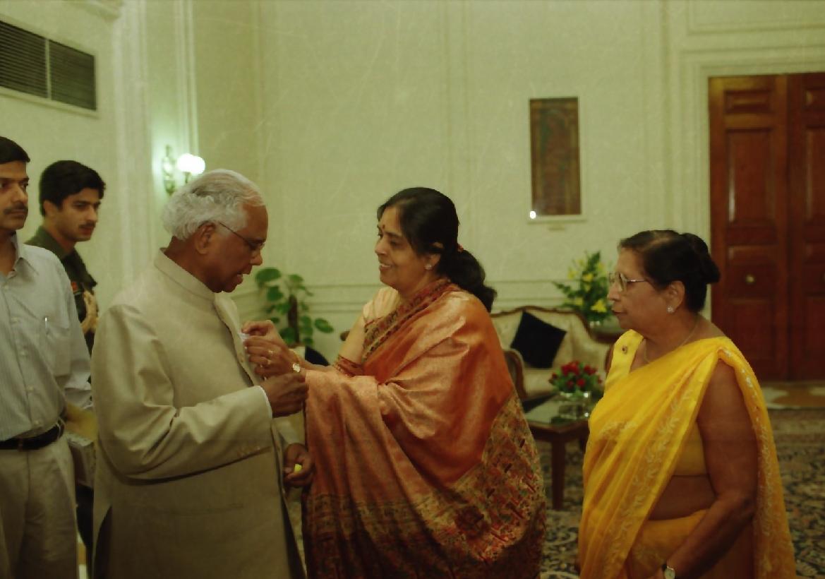 | Caption: | The President of India, Shri K R Narayanan with the Dr Vimala Ramalingam Secretary General India Red Cross Society to pinning a Flag on the occasion of World Red Cross Day at the Morning Room of Rashtrapati Bhavan in New Delhi on May 08, 2000 |