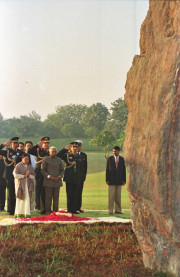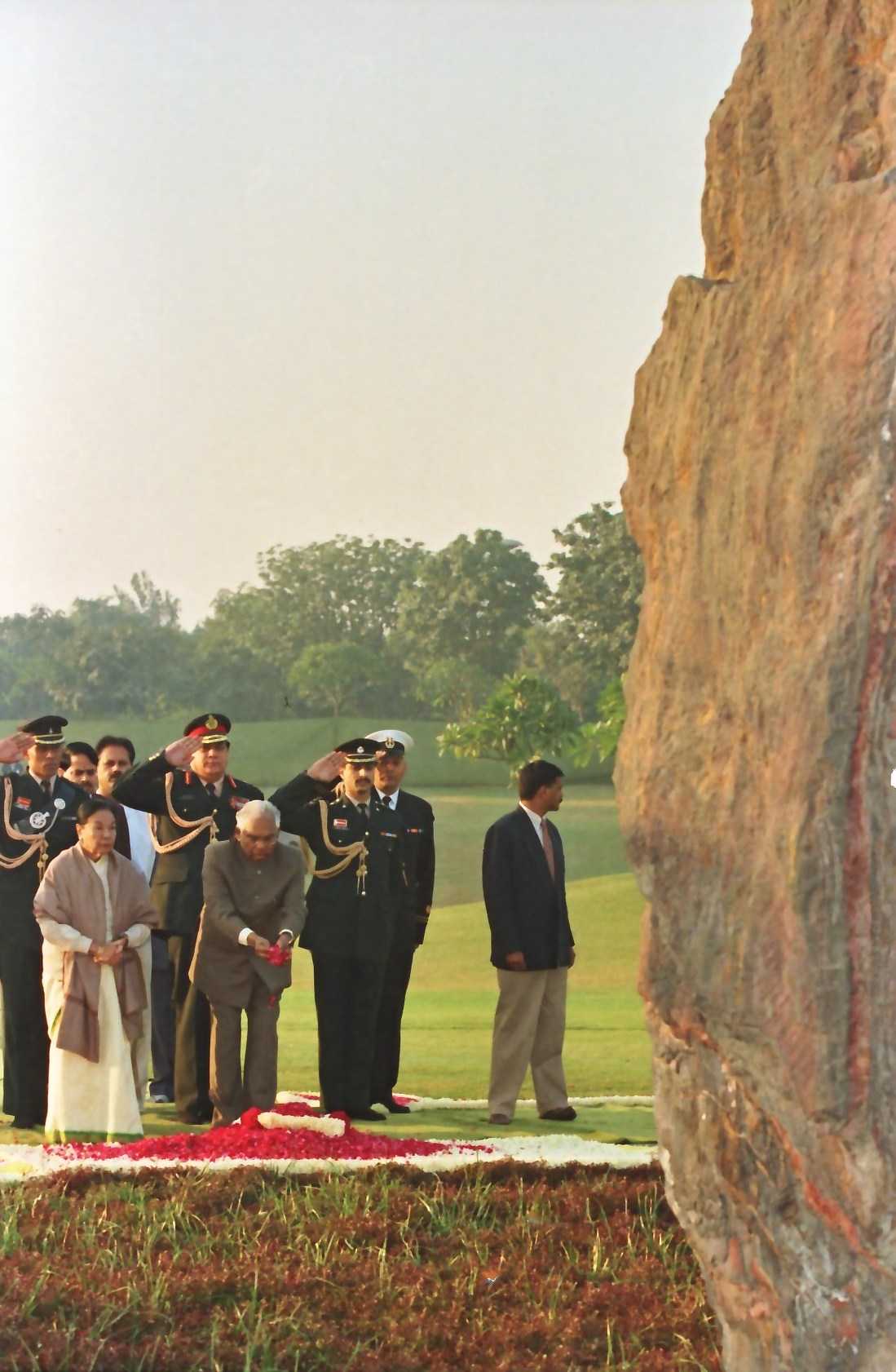 | Caption: | The President of India, Shri K R Narayanan paying Floral Tributes at the Samadhi of the Former Prime Minister of India, Late Smt Indira Gandhi to Commemorate her Birth Anniversary at Shakti Sthal in New Delhi on Nov 19, 1999 |