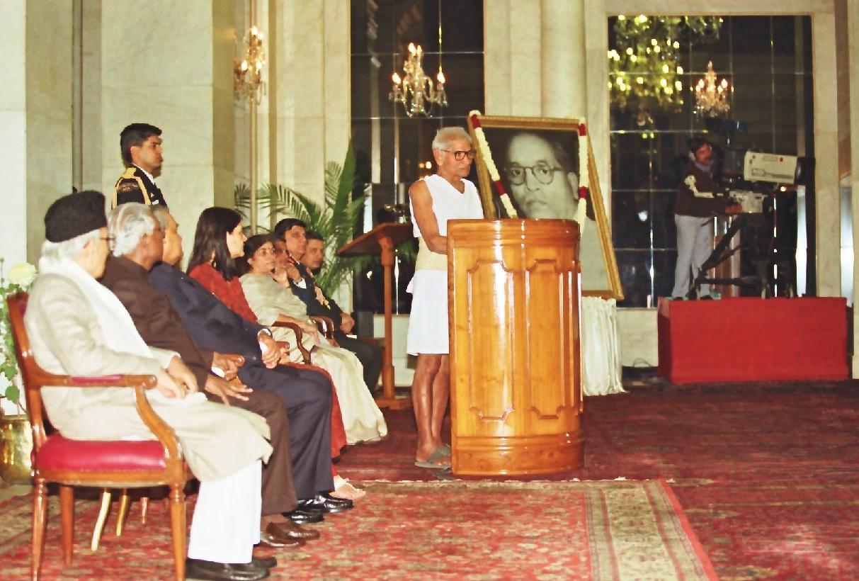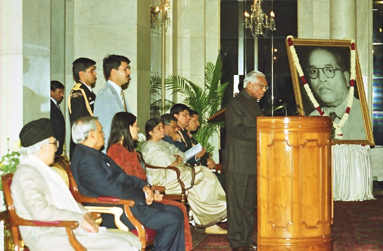 | Caption: | The President of India, Shri K R Narayanan presenting the Dr Ambedkar International Award for Social Change to Baba Amte at the Ashok Hall of Rashtrapati Bhavan in New Delhi on Dec 06, 2000 |
