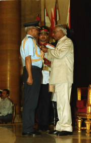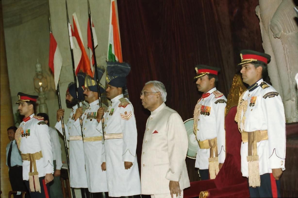 | Caption: | The President of India, Shri K R Narayanan at the Defence Investiture Ceremony-II at the Darbar Hall of Rashtrapati Bhavan in New Delhi on Oct 19, 2001 |