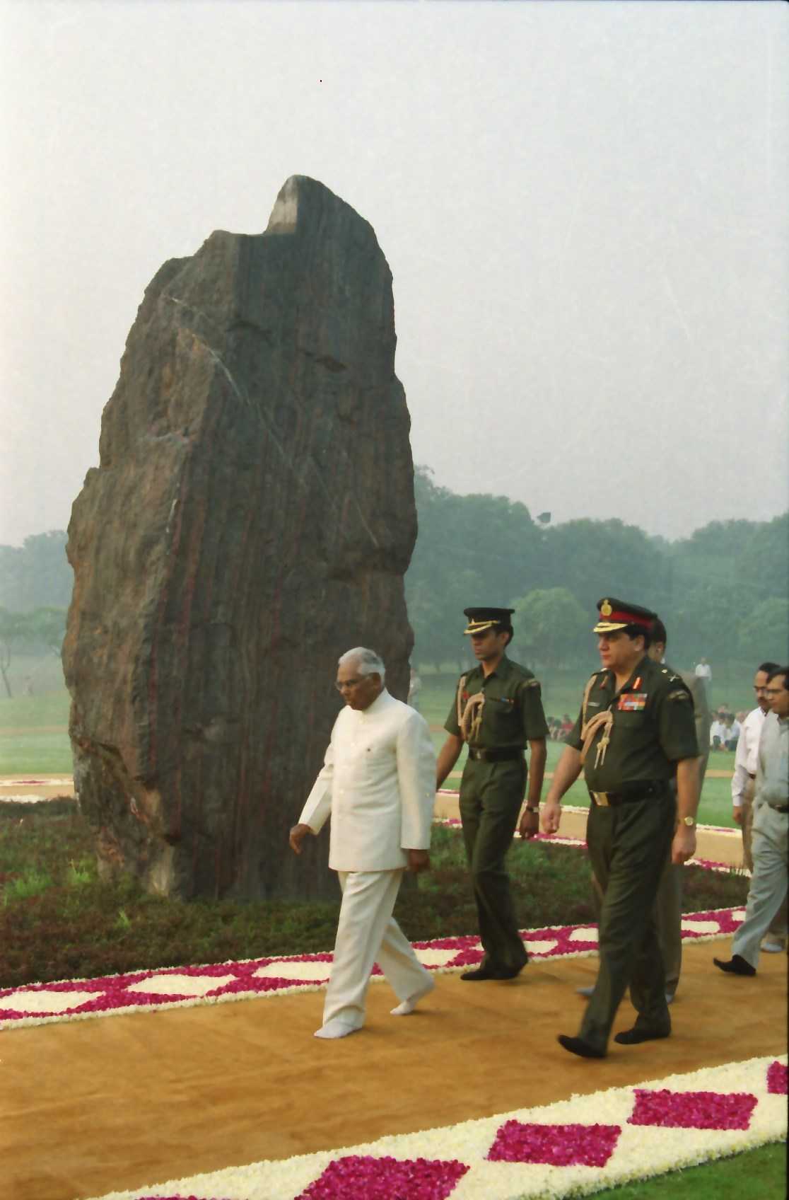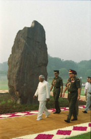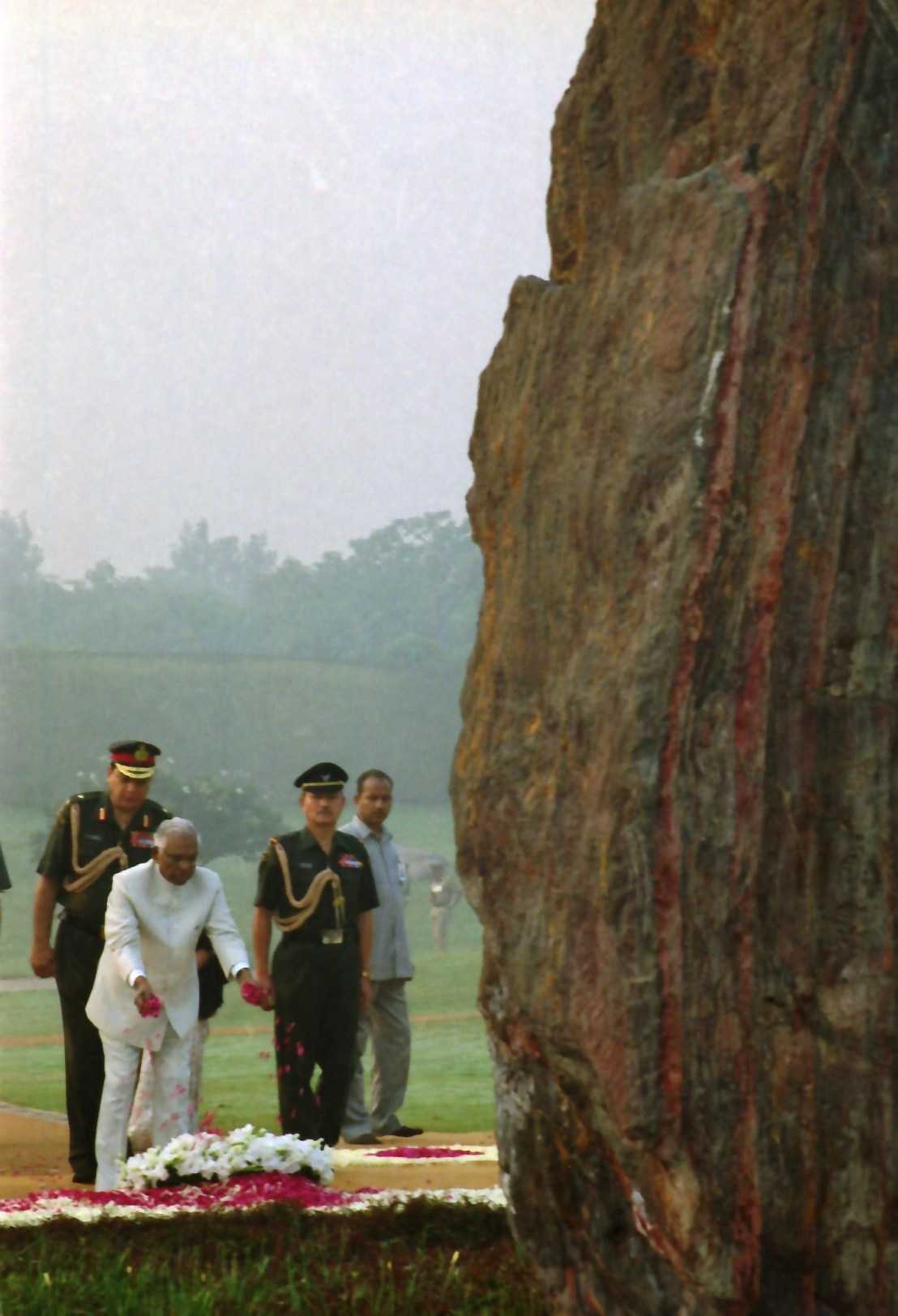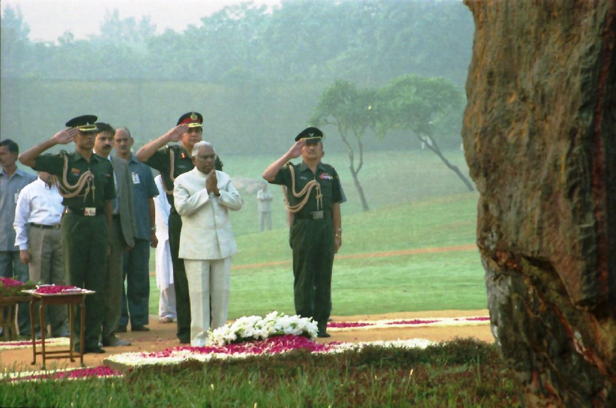 | Caption: | The President of India, Shri K R Narayanan paying homage at the Samadhi of the Former Prime Minister of India, Late Smt Indira Gandhi on the occasion of her Death Anniversary at Shakti Sthal in New Delhi on Oct 31, 2001 |
