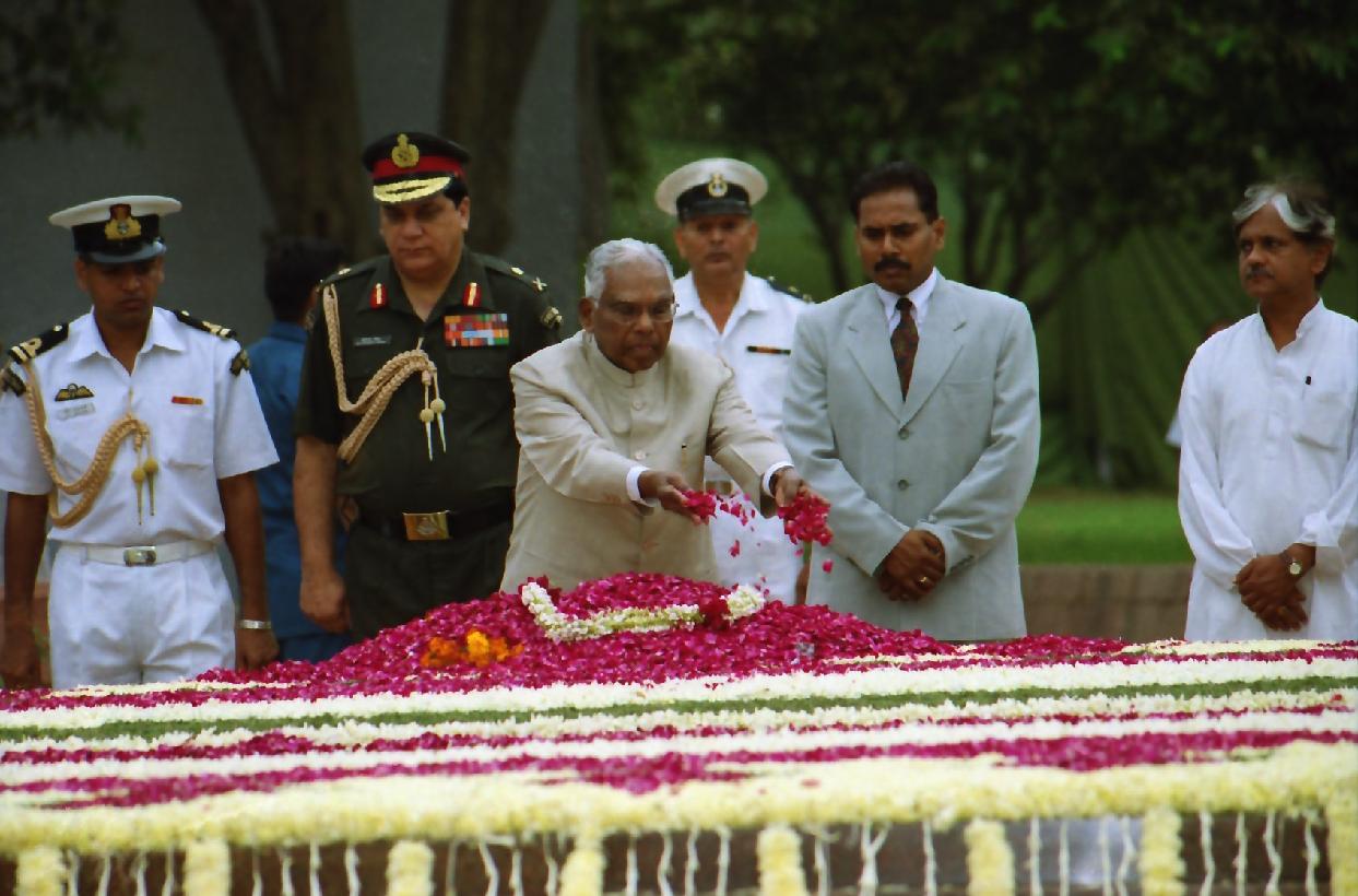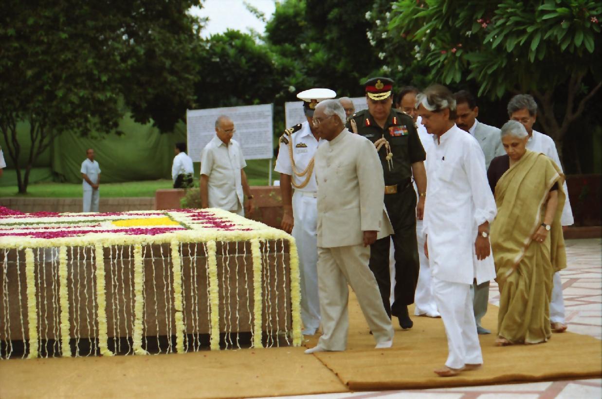 | Caption: | The President of India, Shri K R Narayanan paying homage at the Samadhi of the Former Prime Minister of India, Late Shri Lal Bahadur Shastri on the occasion of his Birth Anniversary at Vijay Ghat in New Delhi on Oct 02, 2001 |