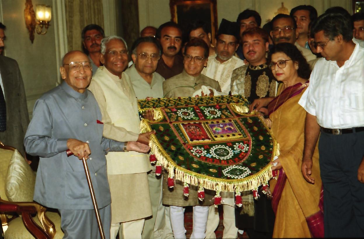 | Caption: | The President of India, Shri K R Narayanan presenting the Pankha of Phool Walon-ki-Sair of Anjuman Saire e Gul Faroshan at the Yellow Drawing Room of Rashtrapati Bhavan in New Delhi on Oct 05, 2001 |