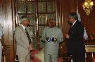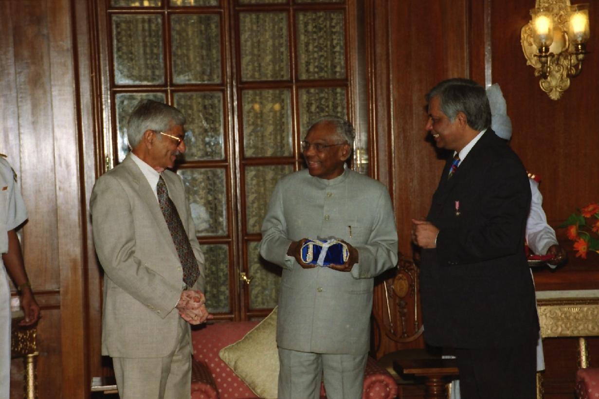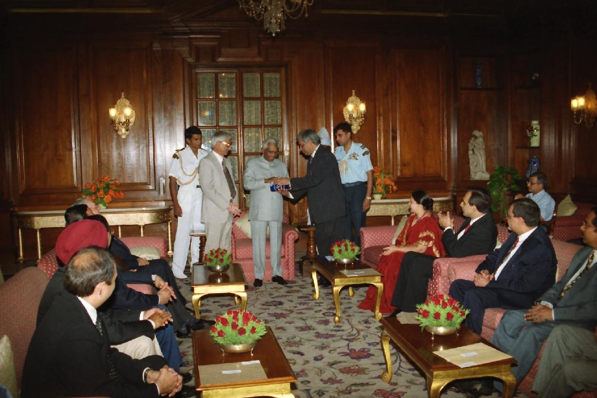 | Caption: | The President of India, Shri K R Narayanan releasing the Treatise on "Minimal Access Surgery Guidelines and Recommendations" and a Set of twelve CDs on "Minimal Access Surgery Basic and Advanced Procedures" from Dr P K Chowbey at the Committee Room of Rashtrapati Bhavan in New Delhi on July 15, 2002 |
