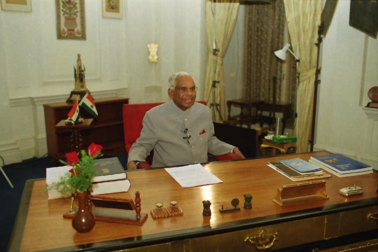 | Caption: | The President of India, Shri K R Narayanan addressing to the Nation through Message Recording on his Farewell at the Morning Room of Rashtrapati Bhavan in New Delhi on July 23, 2003 |