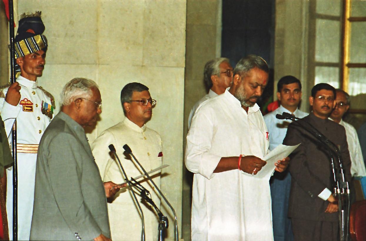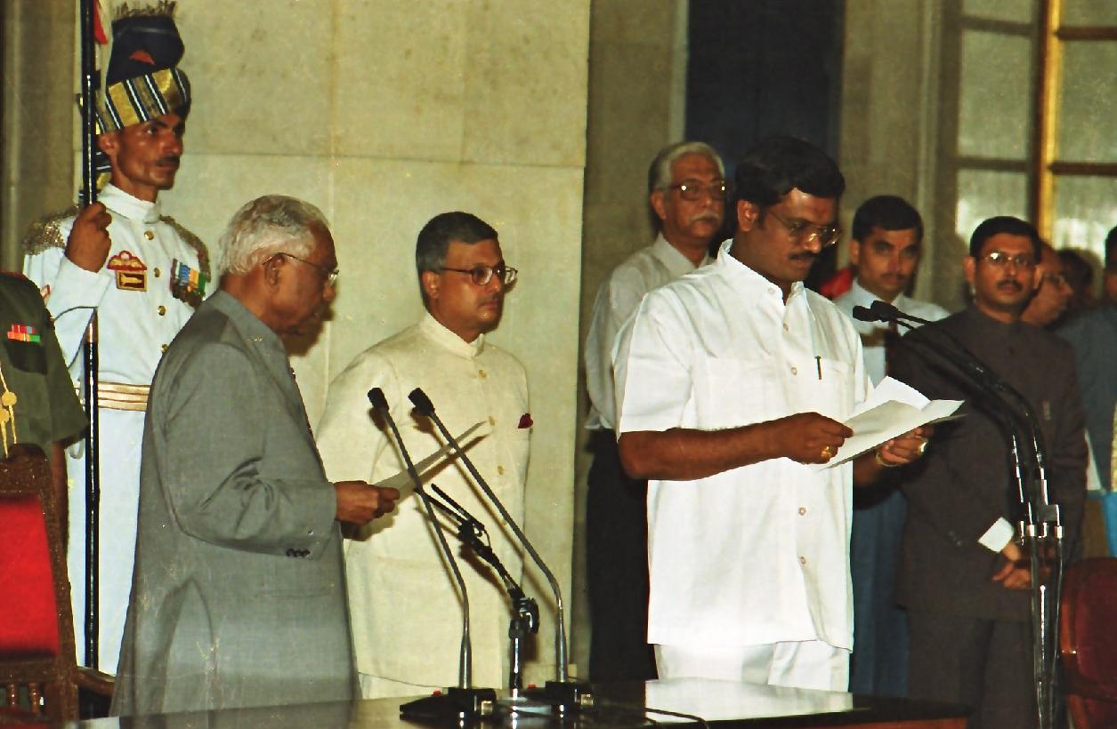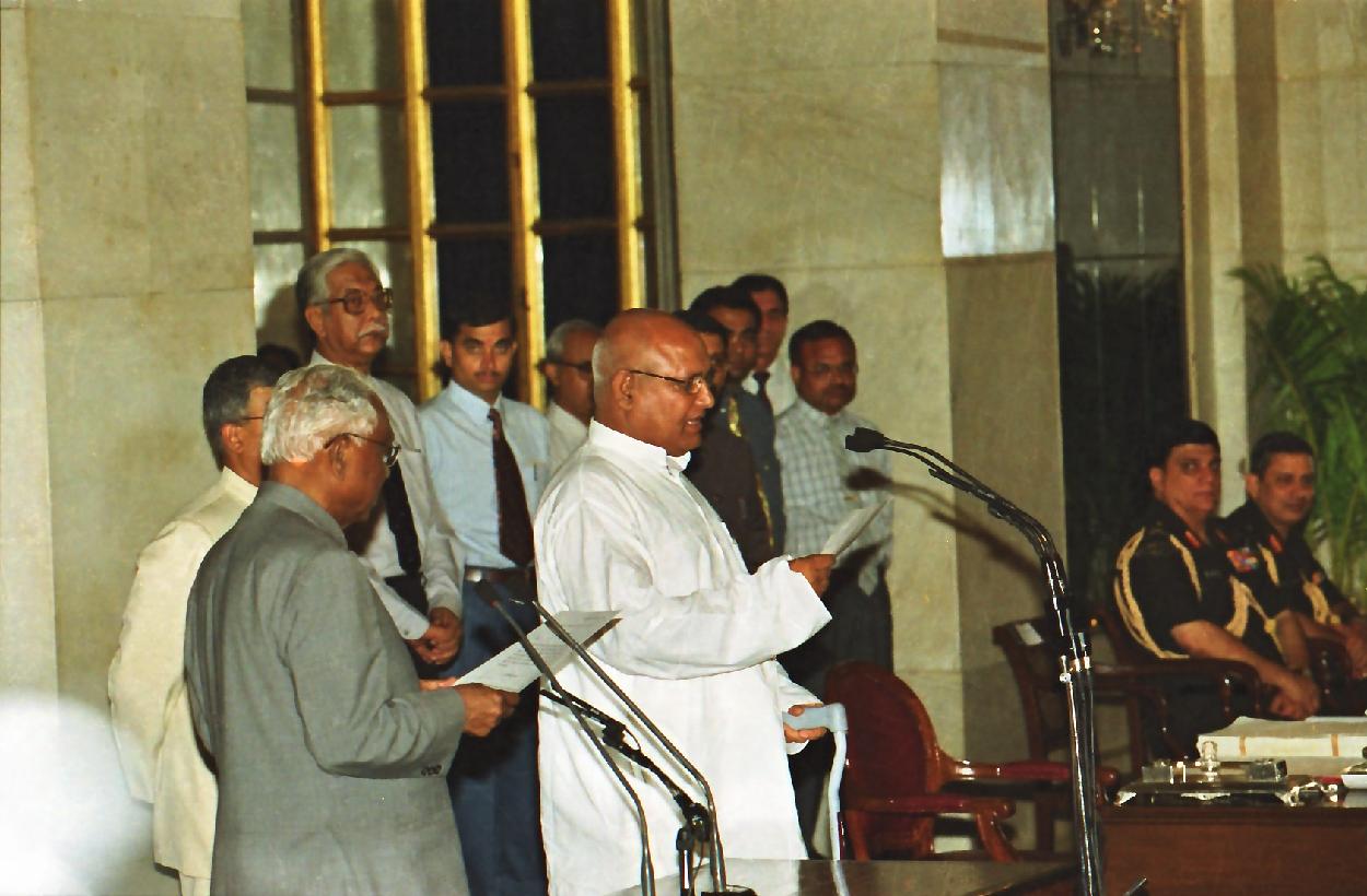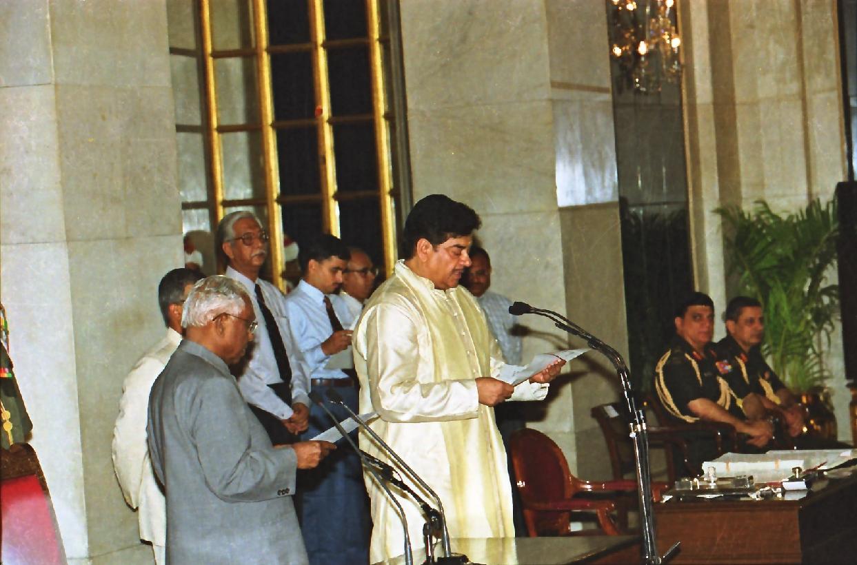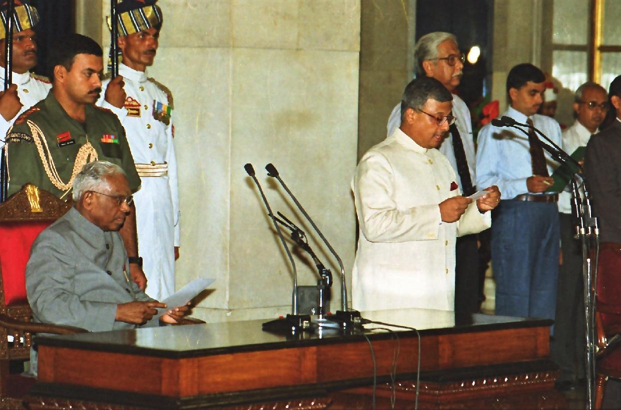 | Caption: | The President of India, Shri K R Narayanan at the Swearing-in-Ceremony of the Council of Ministers at the Ashok Hall of Rashtrapati Bhavan in New Delhi on July 01, 2002 |