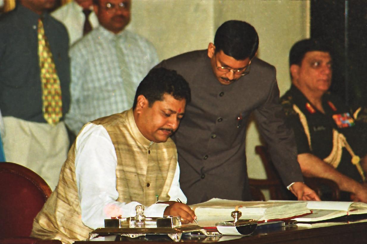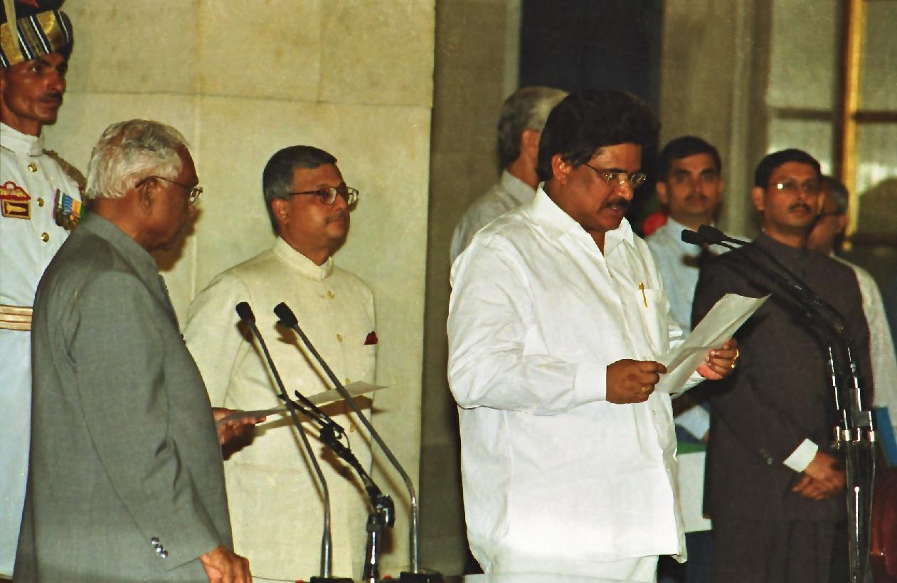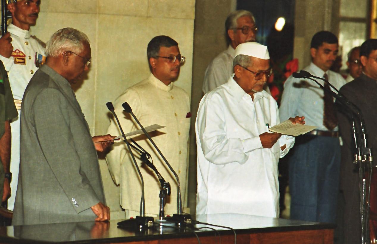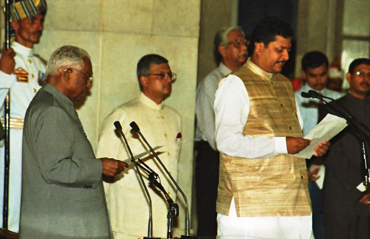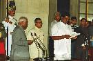 | Caption: | The President of India, Shri K R Narayanan at the Swearing-in-Ceremony of the Council of Ministers at the Ashok Hall of Rashtrapati Bhavan in New Delhi on July 01, 2002 |