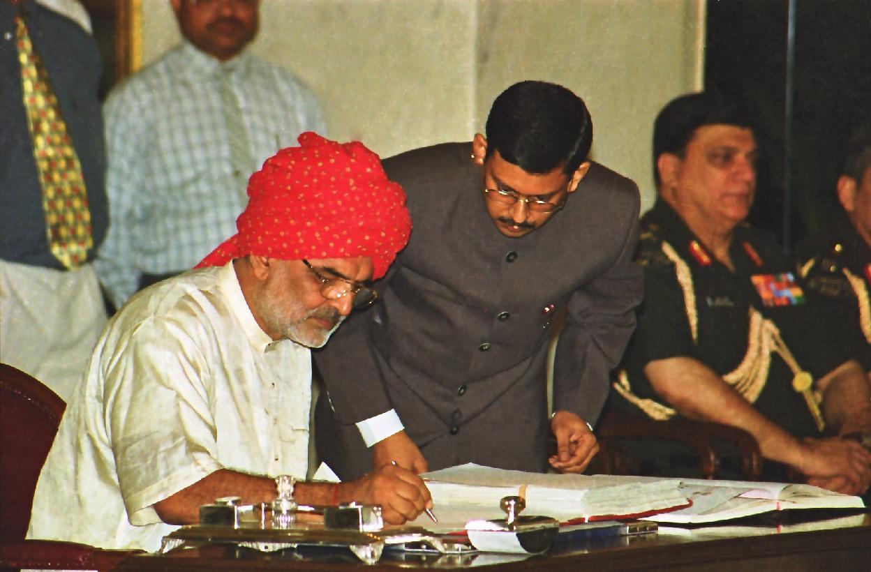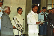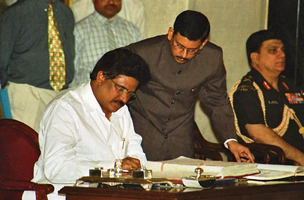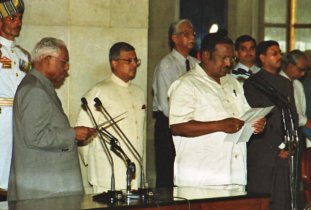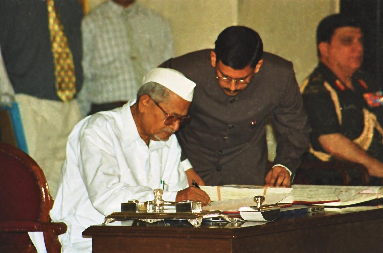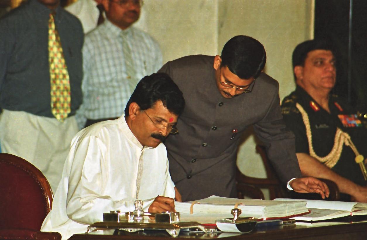 | Caption: | The President of India, Shri K R Narayanan at the Swearing-in-Ceremony of the Council of Ministers at the Ashok Hall of Rashtrapati Bhavan in New Delhi on July 01, 2002 |