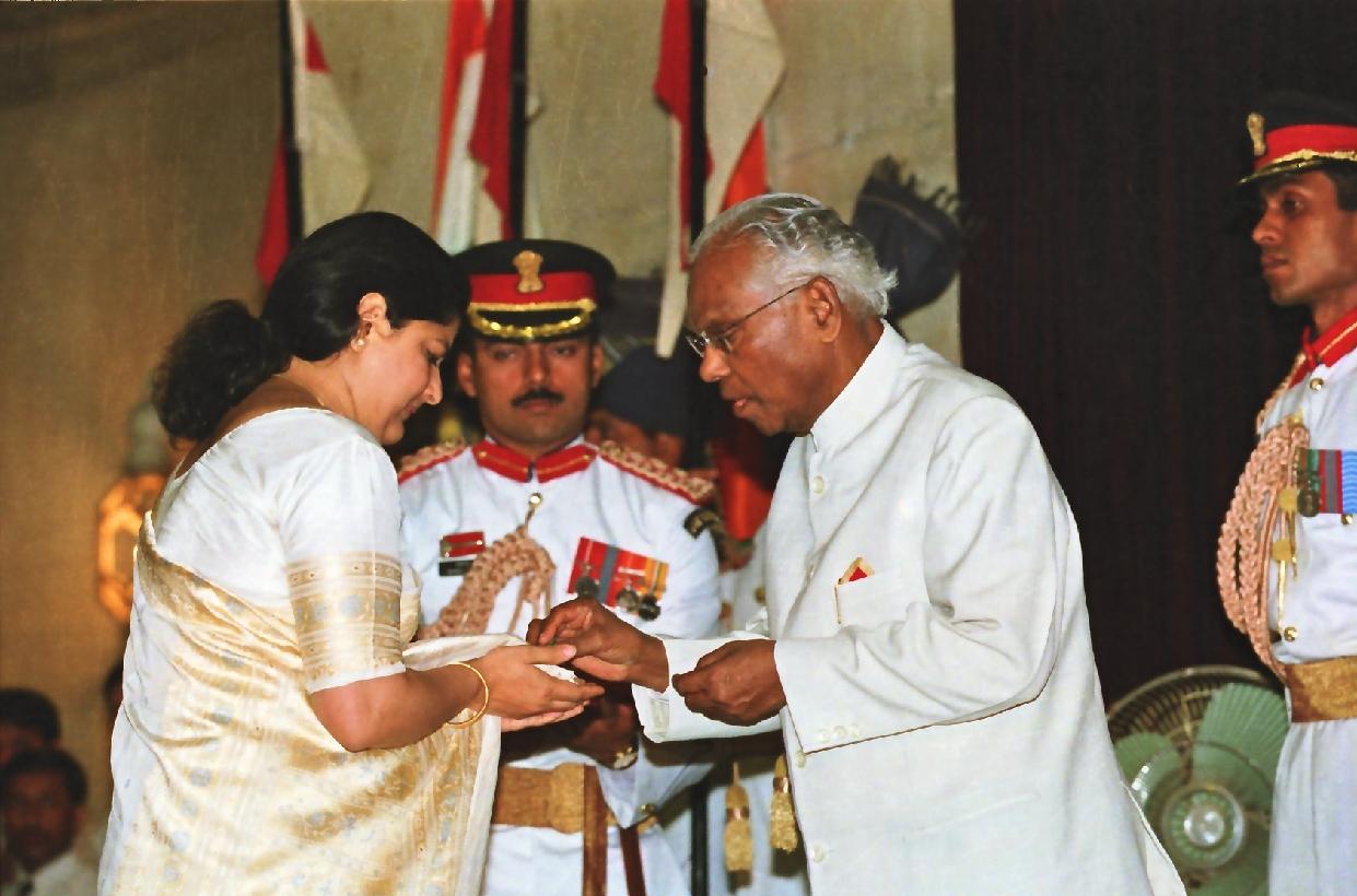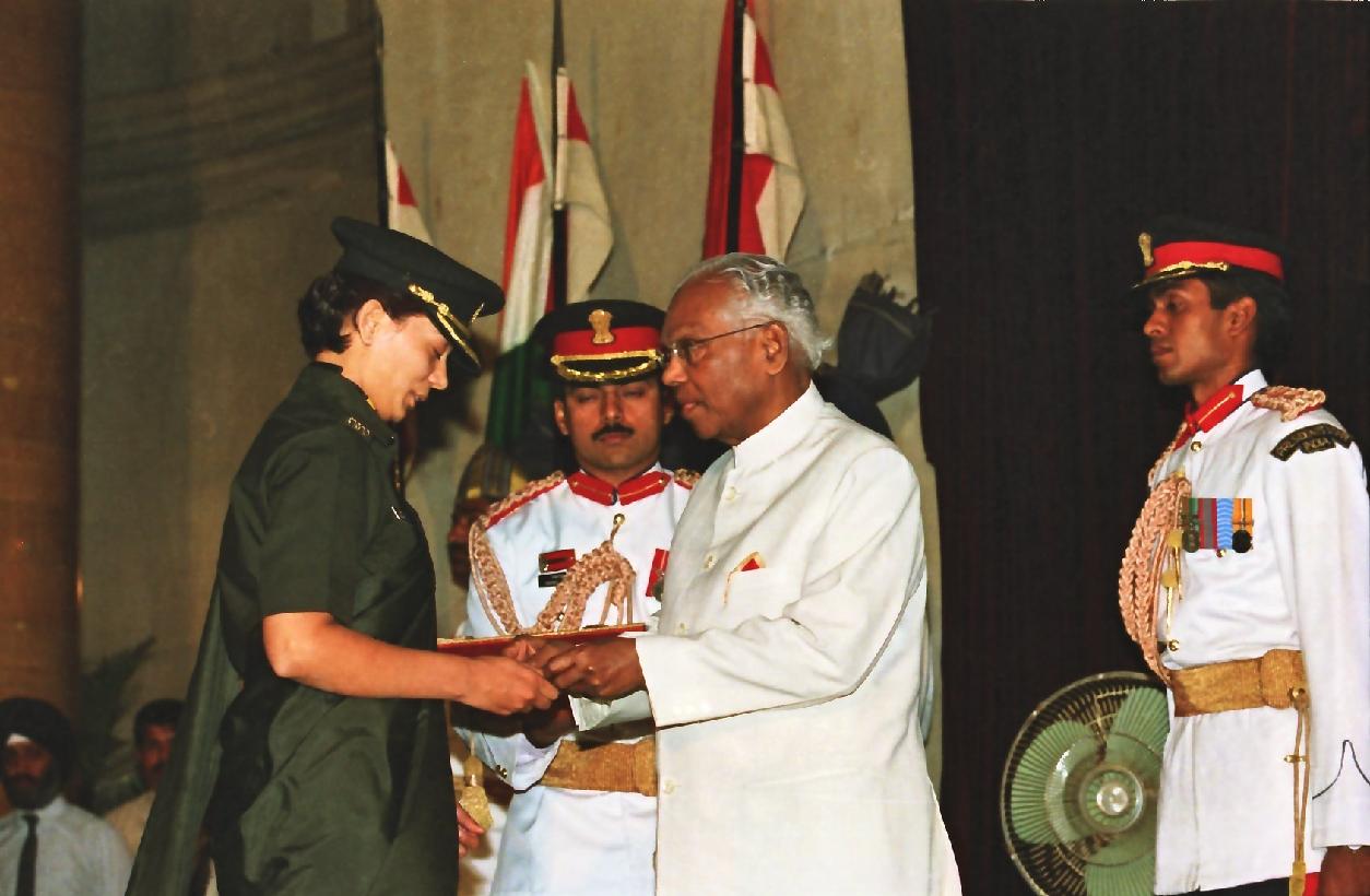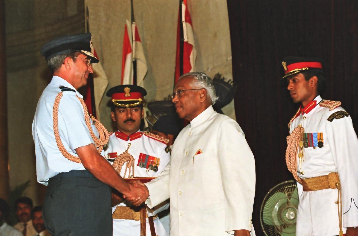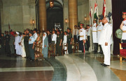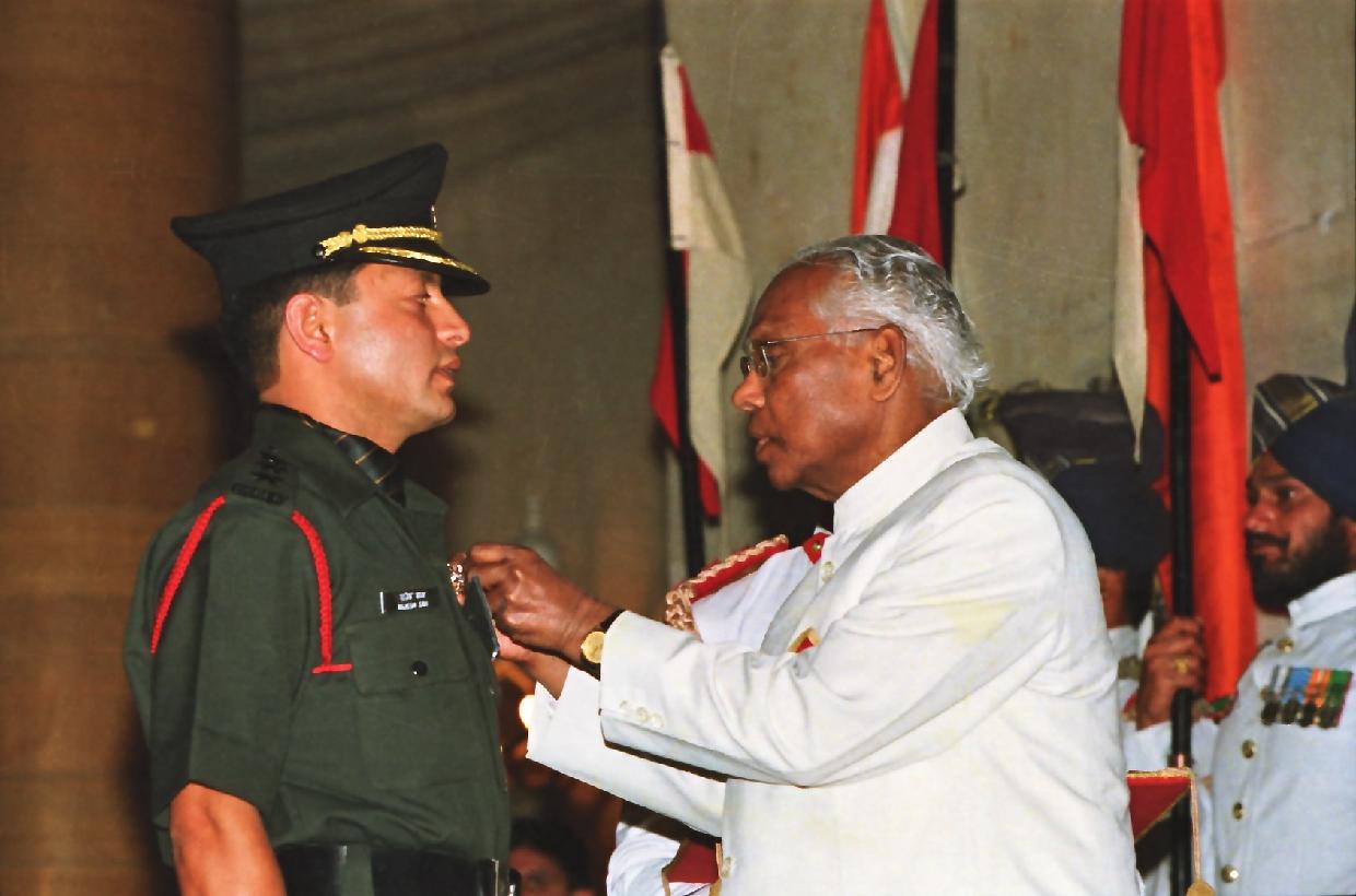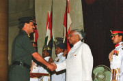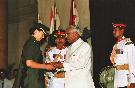 | Caption: | The President of India, Shri K R Narayanan presenting the Defence Investiture Ceremony-I Awards at the Darbar Hall of Rashtrapati Bhavan in New Delhi on April 06, 2000 |