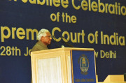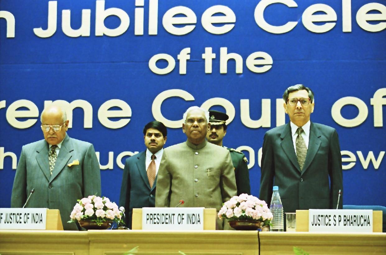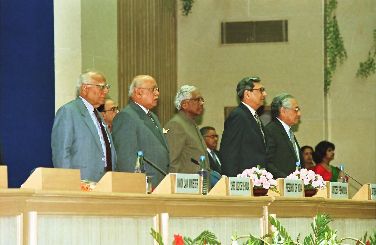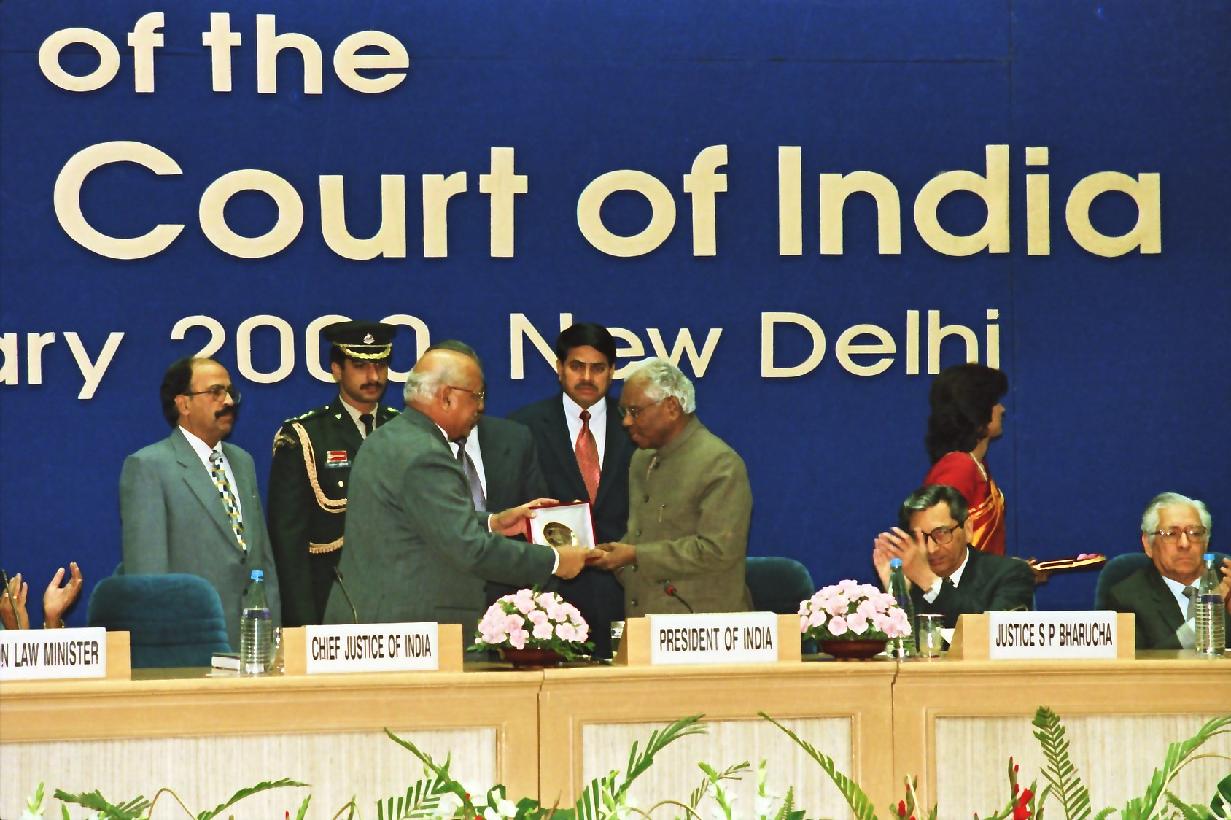 | Caption: | The President of India, Shri K R Narayanan at the Golden Jubilee Celebrations of the Supreme Court of India at Vigyan Bhavan in New Delhi on Jan 28, 2000 |