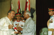 | Caption: | The President of India, Shri K R Narayanan presenting the Padma Awards at the Darbar Hall of Rashtrapati Bhavan in New Delhi on March 30, 2000 |