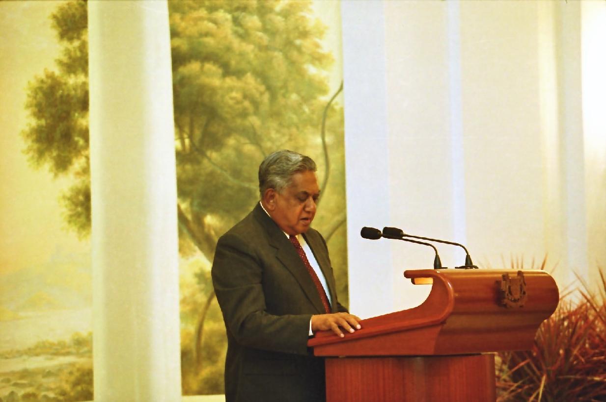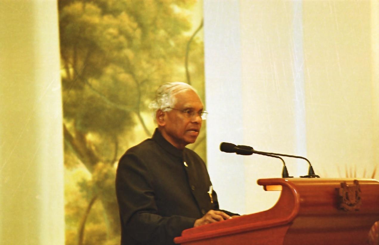| Caption: | The President of India, Shri K R Narayanan at the Banquet Hosted by the President of Singapore, HE Mr S R Nathan in Singapore on Nov 10, 2000 |