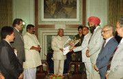 | Caption: | The Chairman with other Members of the National Commission for Minorities, Shri Justice Mohamed Shamim calling on the President of India, Shri K R Narayanan at the Morning Room of Rashtrapati Bhavan in New Delhi on April 25, 2000 |