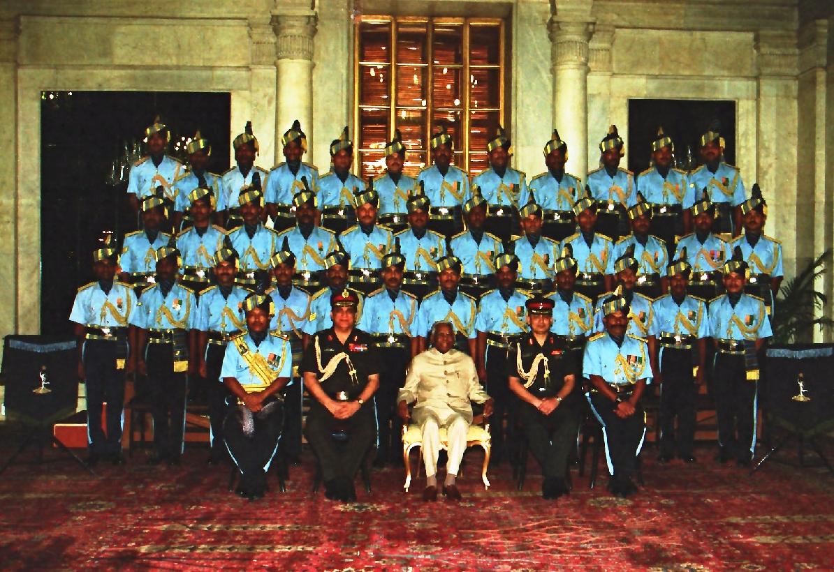 | Caption: | The President of India, Shri K R Narayanan posing for a Group Photograph with the Signals Regimental Centre Brass Band at the Ashok Hall of Rashtrapati Bhavan in New Delhi on June 27, 2002 |