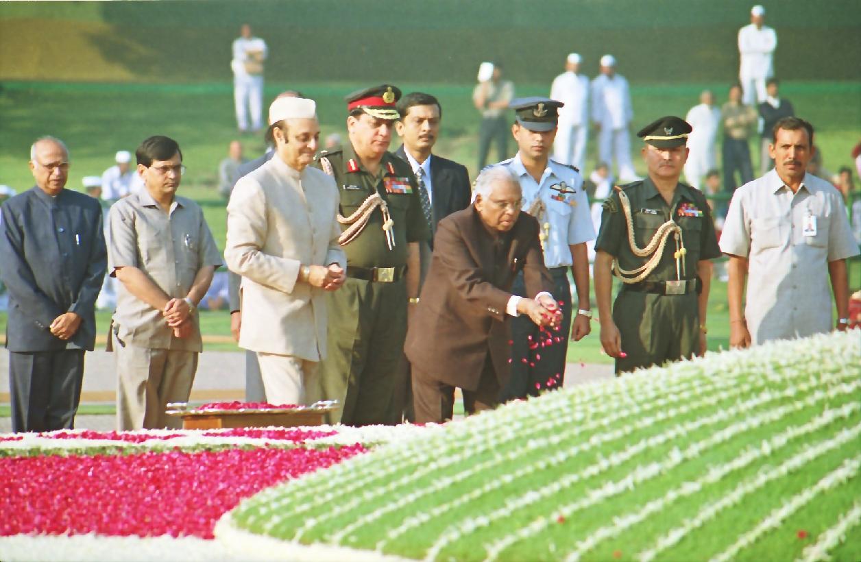 | Caption: | The President of India, Shri K R Narayanan paying floral tributes at the Samadhi of the Prime Minister of India, late Shri Pandit Jawaharlal Nehru to Commemorate his Birth Anniversary at Shanti Van in New Delhi on Nov 14, 2001 |
